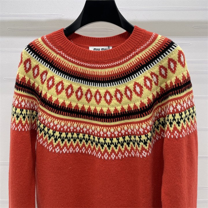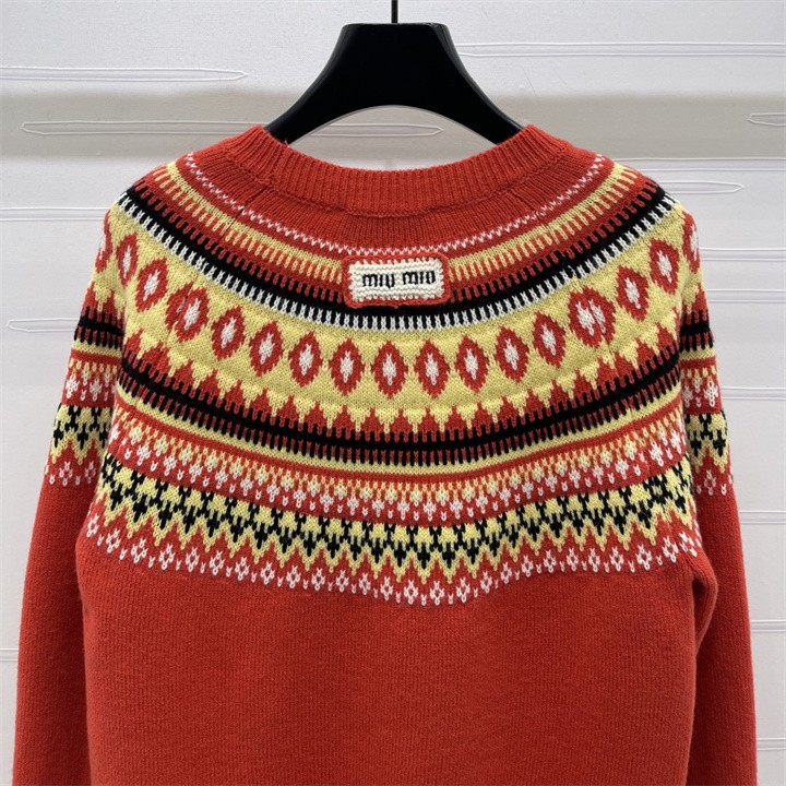 ミュウミュウ MIUMIU XG-MCMM25004 2025年新作 ロングスリーブ ウールニット セーター クルーネック 長袖 レディース