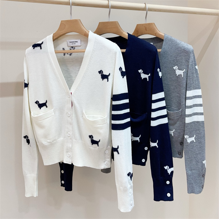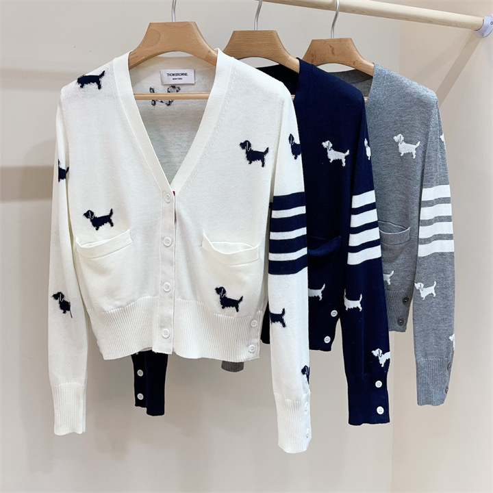 全商品を表示する:トム ブラウン Thom Browne XG-MKTB25005 2025年新作 カーディガン ロングスリーブ ウールニット セーター Vネック 長袖 レディース