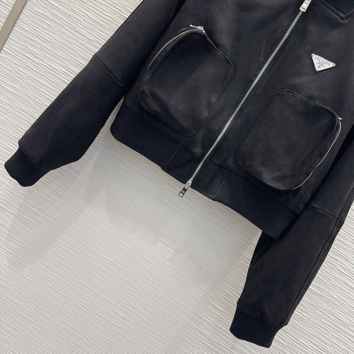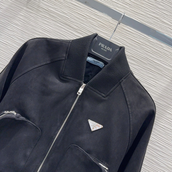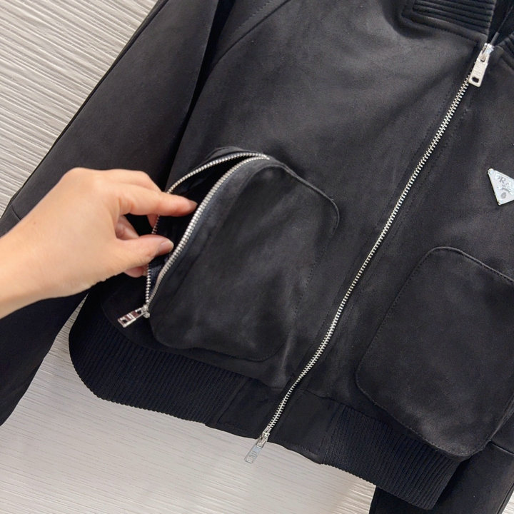 全商品を表示する:プラダ PRADA 2025年新作 スエード ジップジャケット ショートコート ロングスリーブ アウターコート