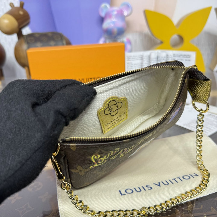 ルイヴィトン LOUISVUITTON M15328 2025年新作 ミニ ポシェット アクセソワール チェーンポーチ コーティッド キャンバス