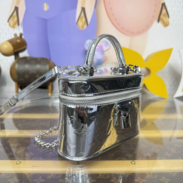 ルイヴィトン LOUISVUITTON M26097 2025年新作 ヴァニティ チェーン ポーチ 化粧かばん ハンドバッグ コーティッド キャンバス シルバー