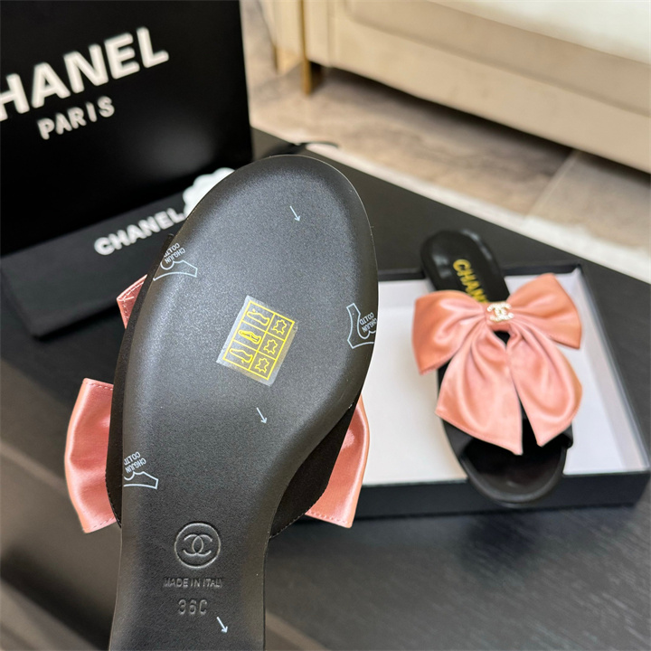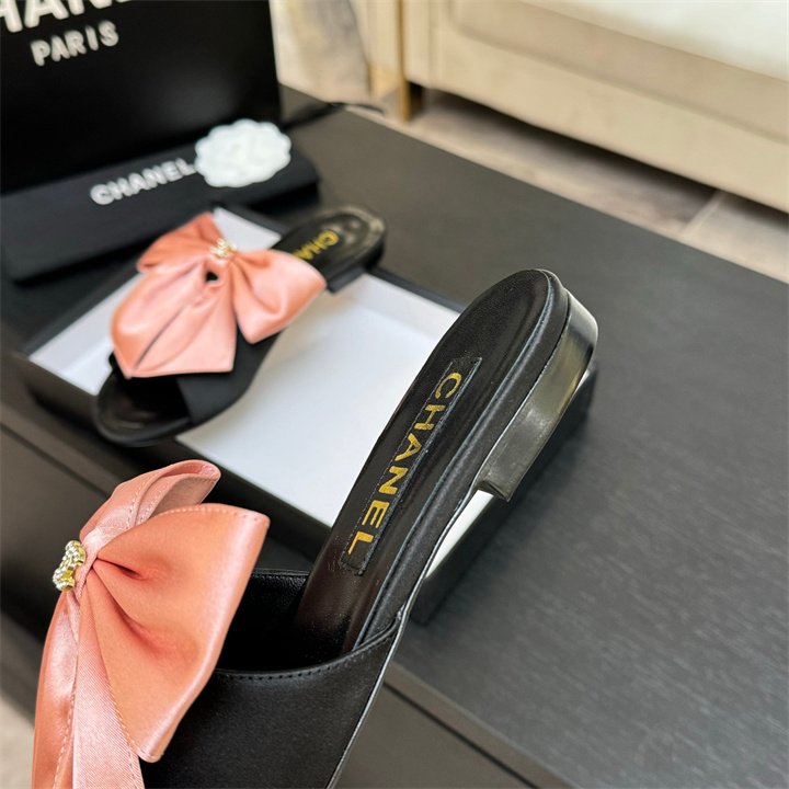 シャネル CHANEL 26-CHJ25094 2025年新作 スライドサンダル フラットフォーム ミュール レディース シューズ リボン付き
