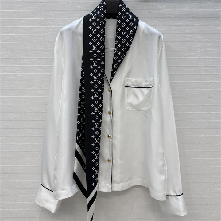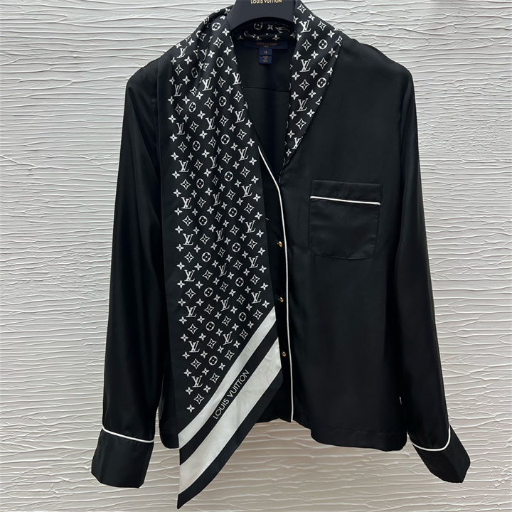 全商品を表示する:ルイヴィトン LOUISVUITTON 2026年新作 モノグラムスカーフ パジャマトップ ロングスリーブ シャツ ブラウス シルク レディース