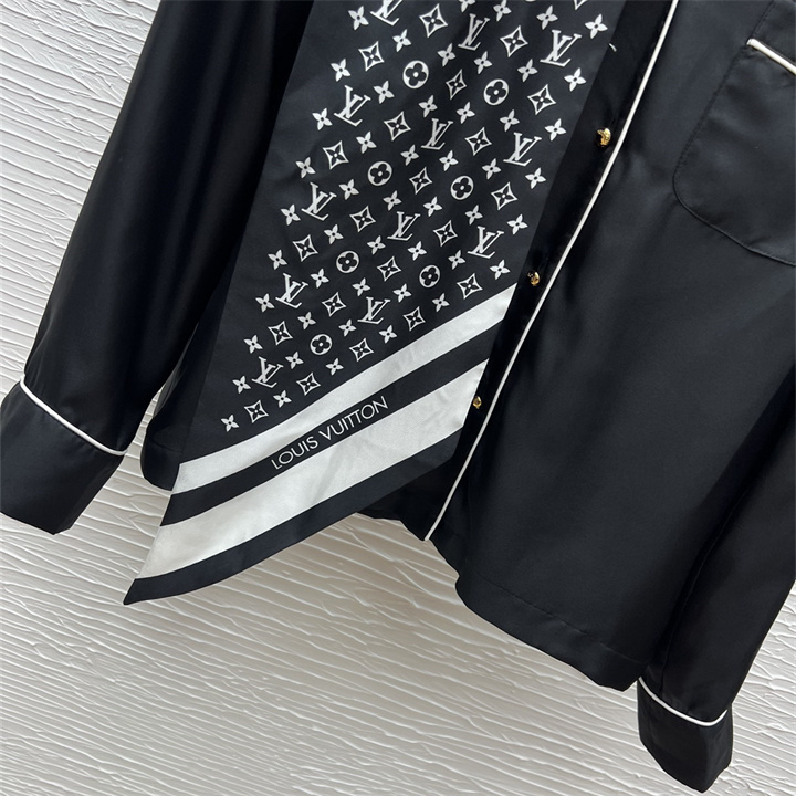 商品名称:ルイヴィトン LOUISVUITTON 2026年新作 モノグラムスカーフ パジャマトップ ロングスリーブ シャツ ブラウス シルク レディース