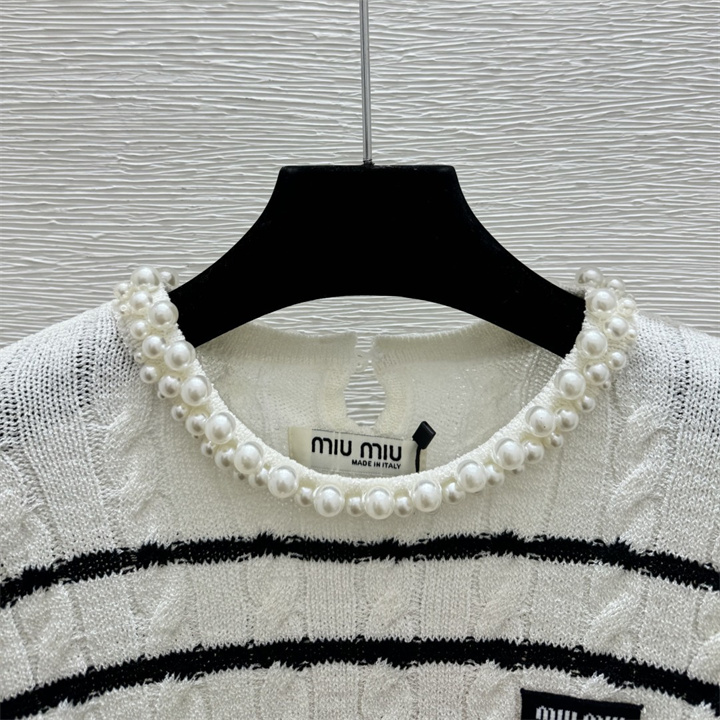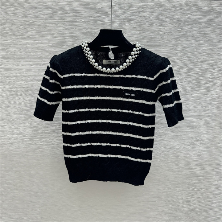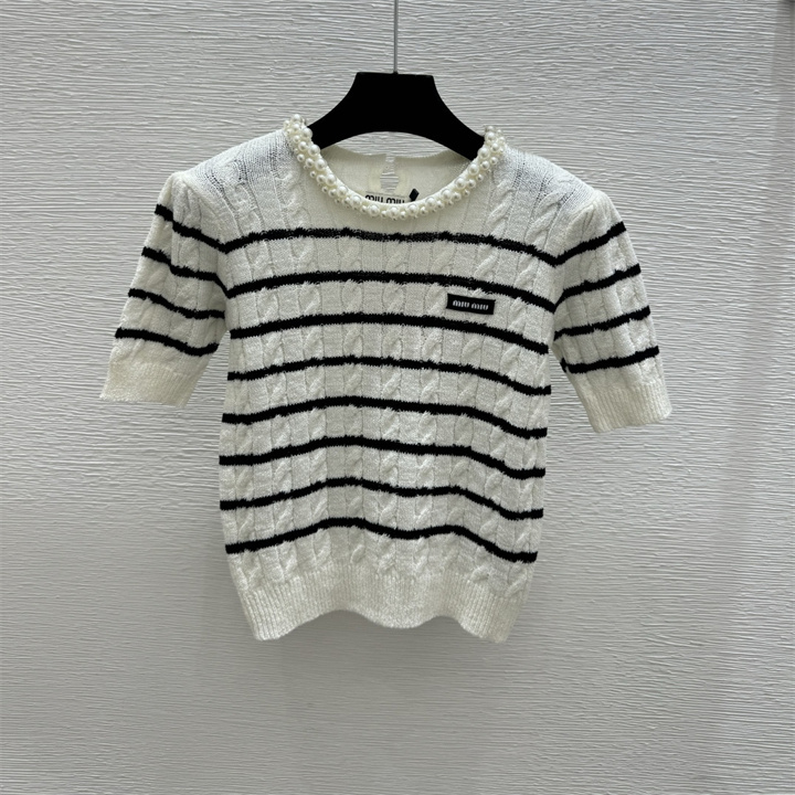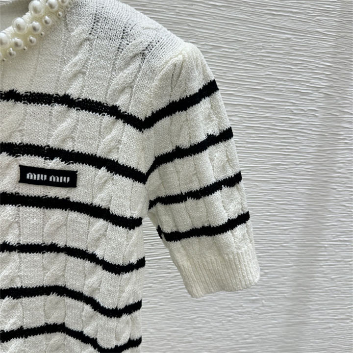 ミュウミュウ MIUMIU 2026年新作 ショートスリーブ ウール セーター クルーネック レディース