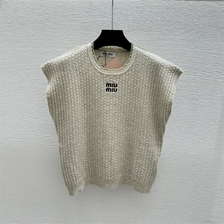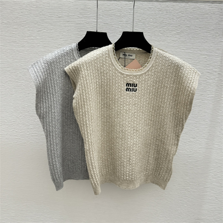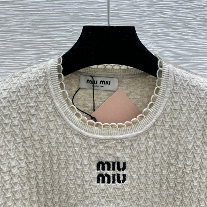 ミュウミュウ MIUMIU 2026年新作 ショートスリーブ ウール セーター クルーネック レディース