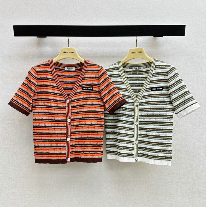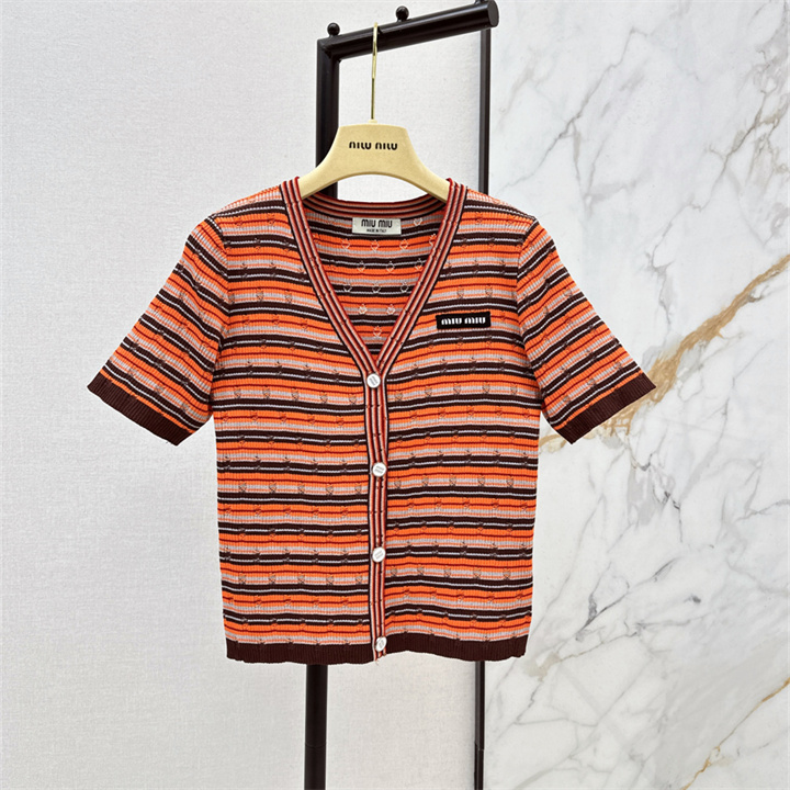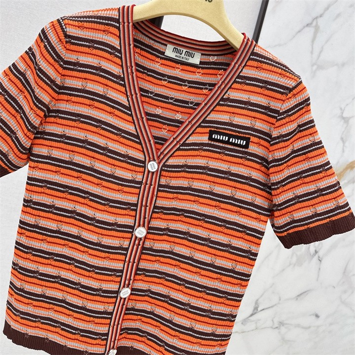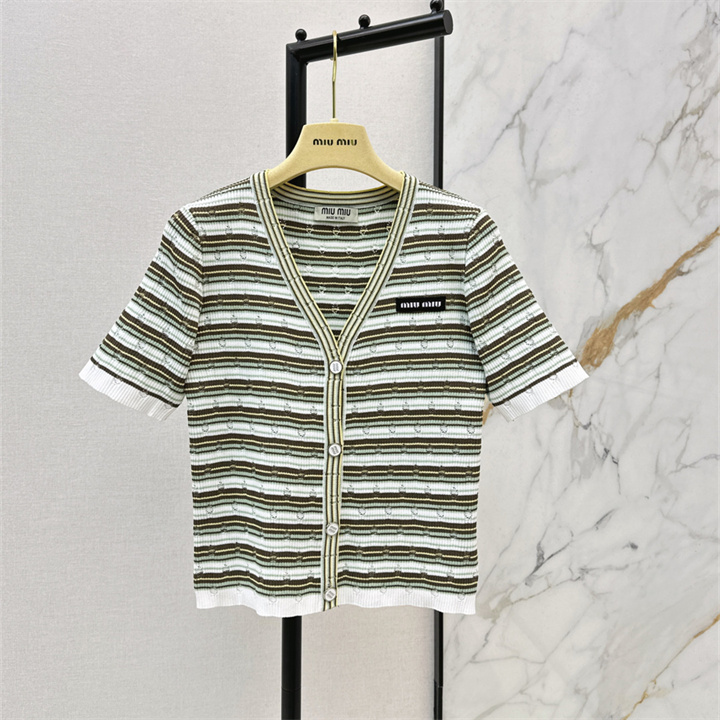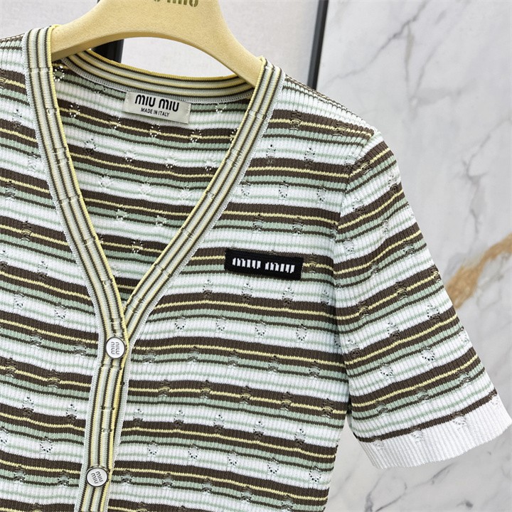 全商品を表示する:ミュウミュウ MIUMIU 2026年新作 カーディガン ショートスリーブ セーター 半袖 Vネック カジュアル レディース
