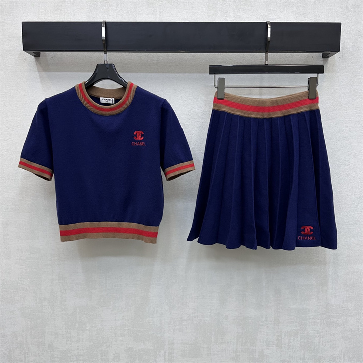シャネル CHANEL 2026年新作 ニット 上下セット ショートスリーブ セーター ニット ミニスカート