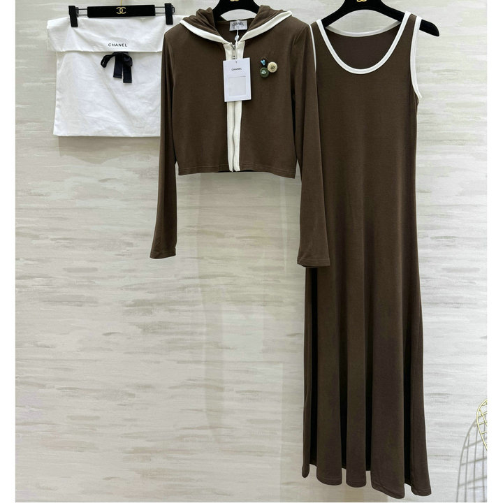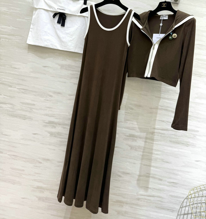 全商品を表示する:シャネル CHANEL XG-TZCH26015F 2026年新作 ウール 上下セット タンクトップ ドレス ノースリーブ ワンピース ロングスリーブ ニットジャケット