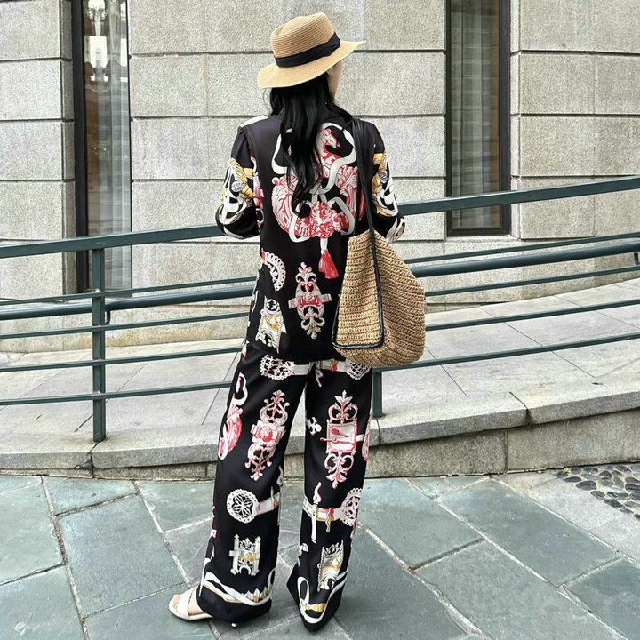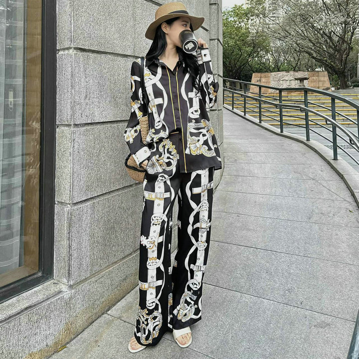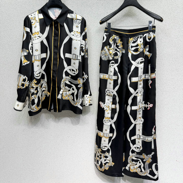 全商品を表示する:エルメス HERMES XG-TZHE26001K 2026年新作 上下セット シルク ロングスリーブ シャツ ブラウス シルク プリント パンツ カジュアル