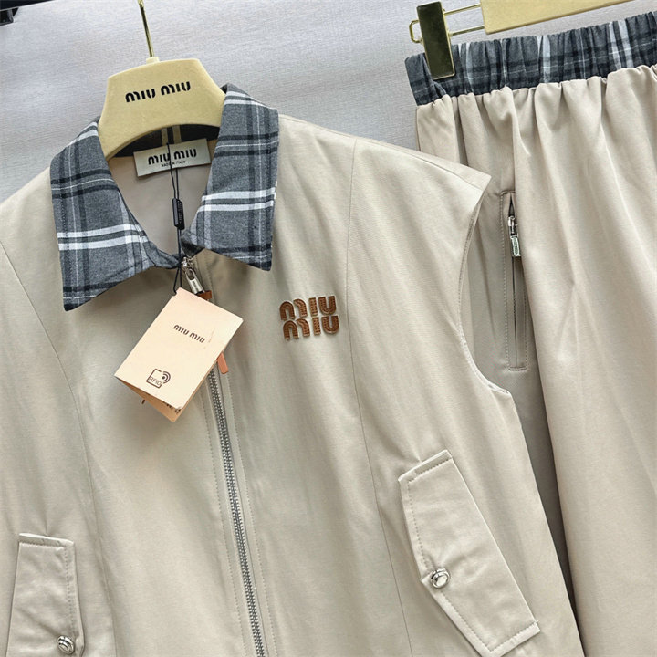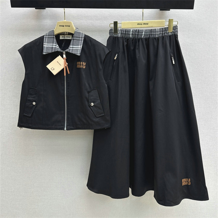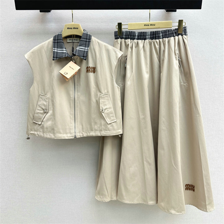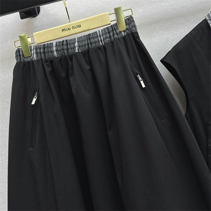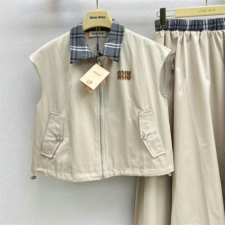 ミュウミュウ MIUMIU XG-TZMM26002 2026年新作 上下 セットパップ タートル ベストジャケット ミディアム スカート レディース
