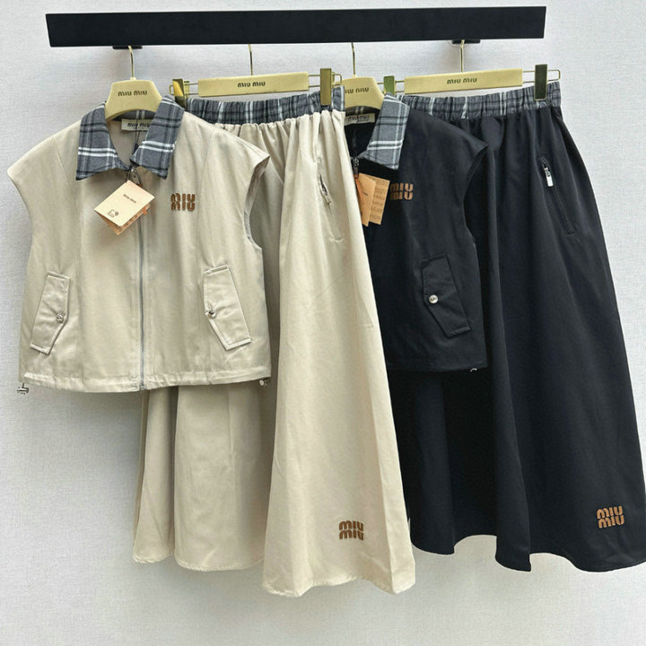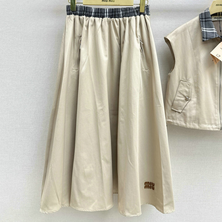 全商品を表示する:ミュウミュウ MIUMIU XG-TZMM26002 2026年新作 上下 セットパップ タートル ベストジャケット ミディアム スカート レディース