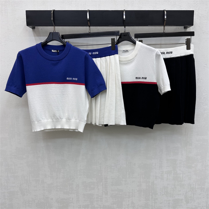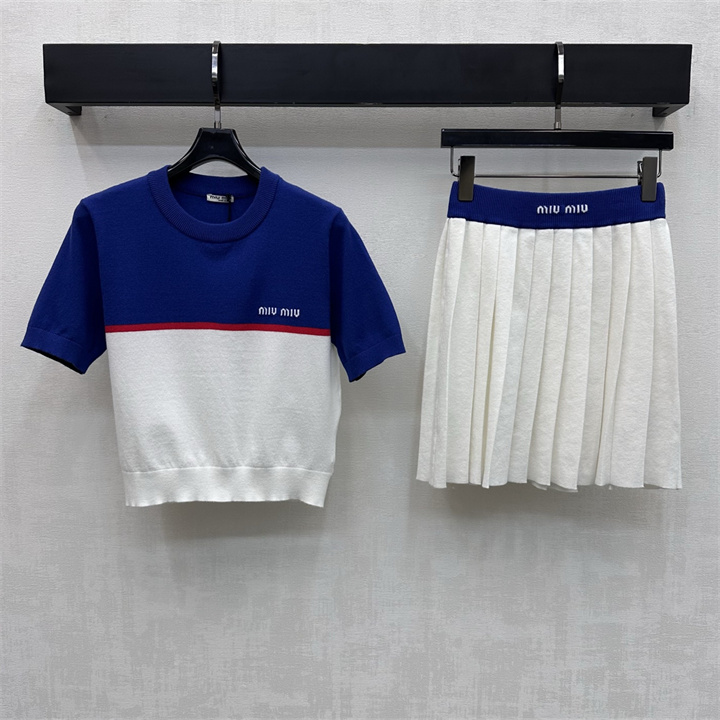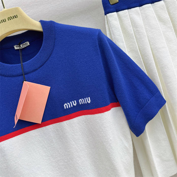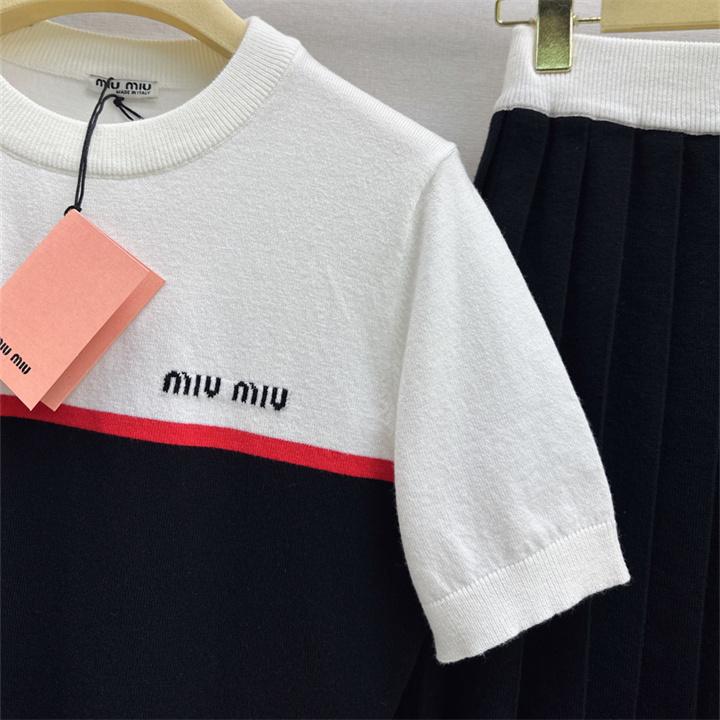 全商品を表示する:ミュウミュウ MIUMIU XG-TZMM26006 2026年新作 ウール 上下 セットパップ ショートスリーブ ニットシャツ ミニスカート レディース