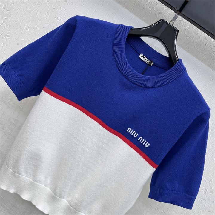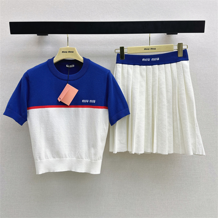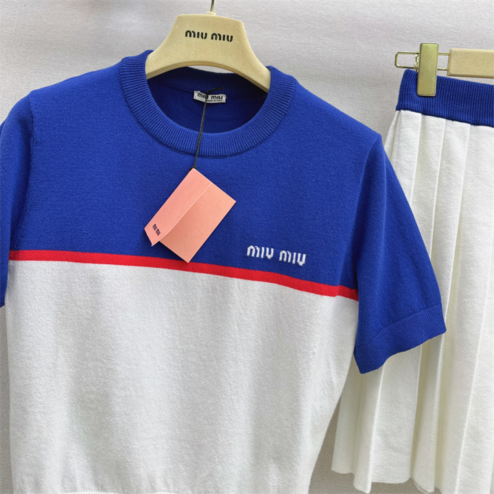 ミュウミュウ MIUMIU XG-TZMM26006 2026年新作 ウール 上下 セットパップ ショートスリーブ ニットシャツ ミニスカート レディース