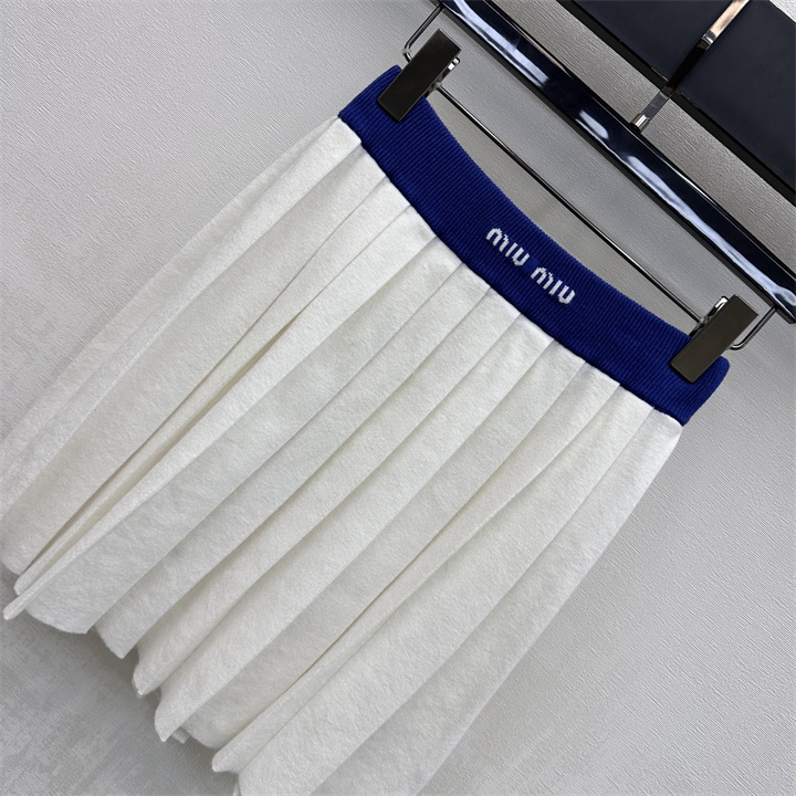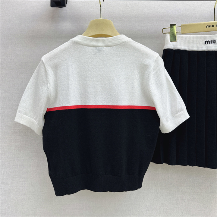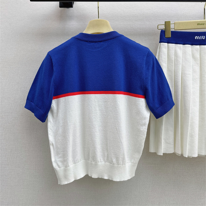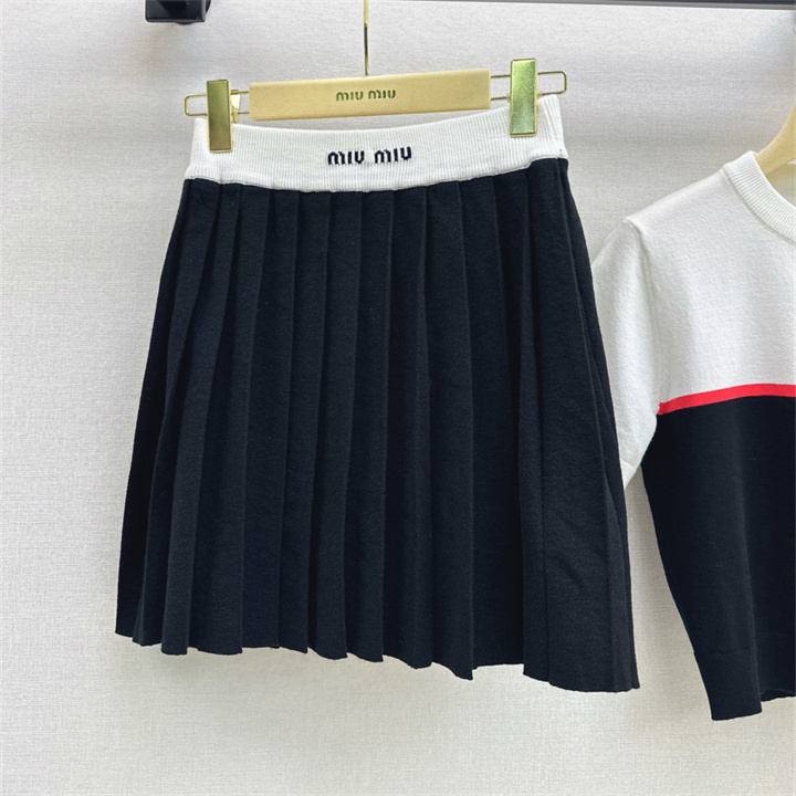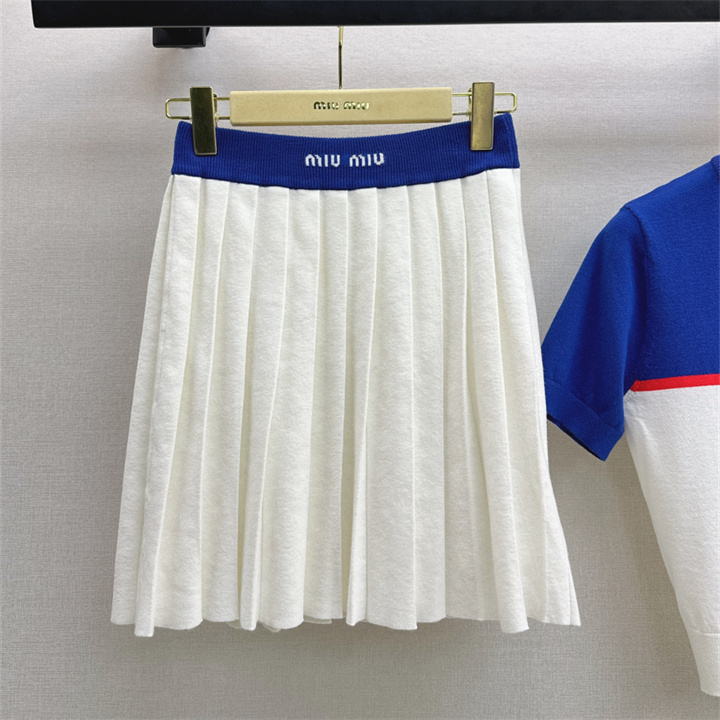 商品名称:ミュウミュウ MIUMIU XG-TZMM26006 2026年新作 ウール 上下 セットパップ ショートスリーブ ニットシャツ ミニスカート レディース