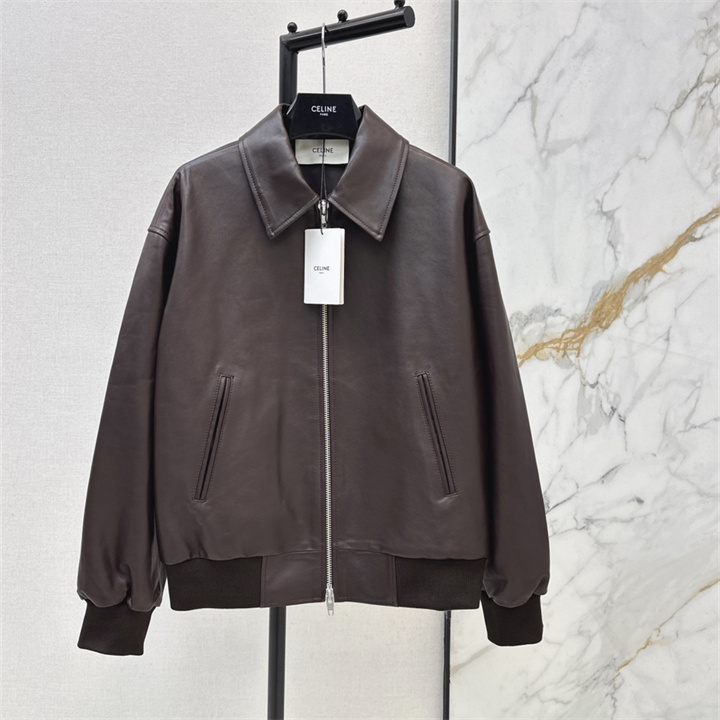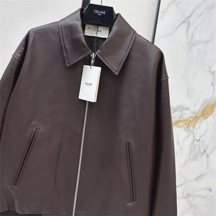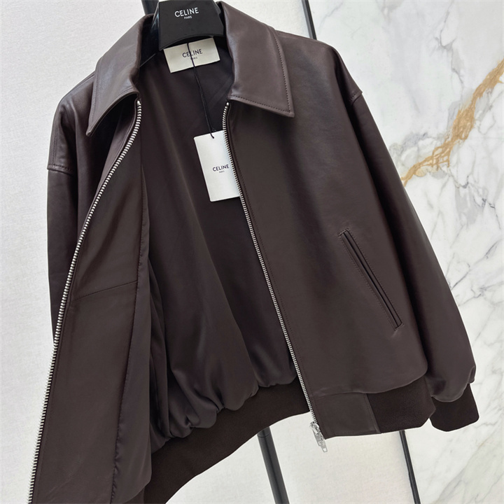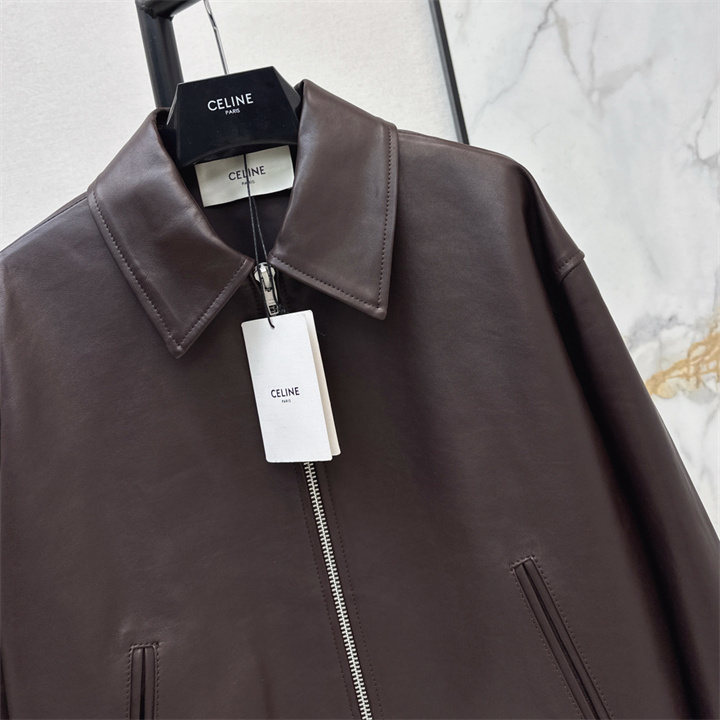 全商品を表示する:セリーヌ CELINE XG-WTCE26005 2026年新作 ロングスリーブ レザー ジャケット ジップ開閉式 トップスコート レディース