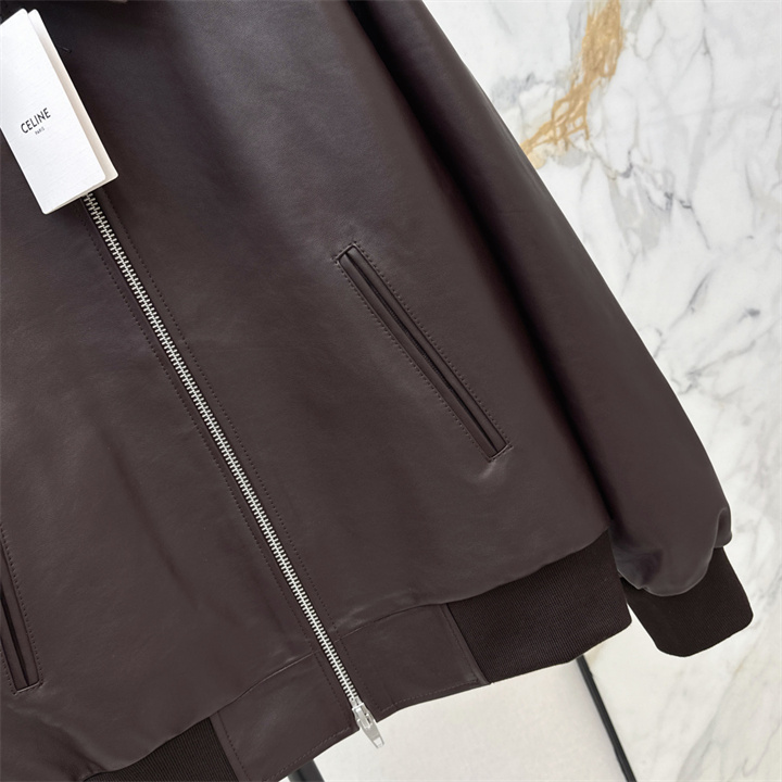 セリーヌ CELINE XG-WTCE26005 2026年新作 ロングスリーブ レザー ジャケット ジップ開閉式 トップスコート レディース