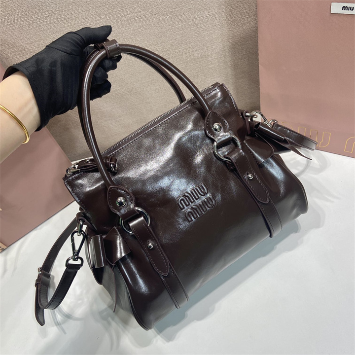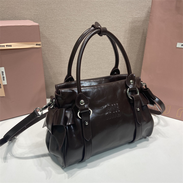 ミュウミュウ MIUMIU 99-MM5BA327KF 2026年新作 トップハンドルバッグ トートバッグ ハンドバッグ 光沢感のあるレザー