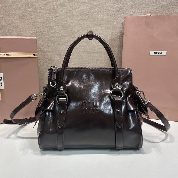 全商品を表示する:ミュウミュウ MIUMIU 99-MM5BA327KF 2026年新作 トップハンドルバッグ トートバッグ ハンドバッグ 光沢感のあるレザー