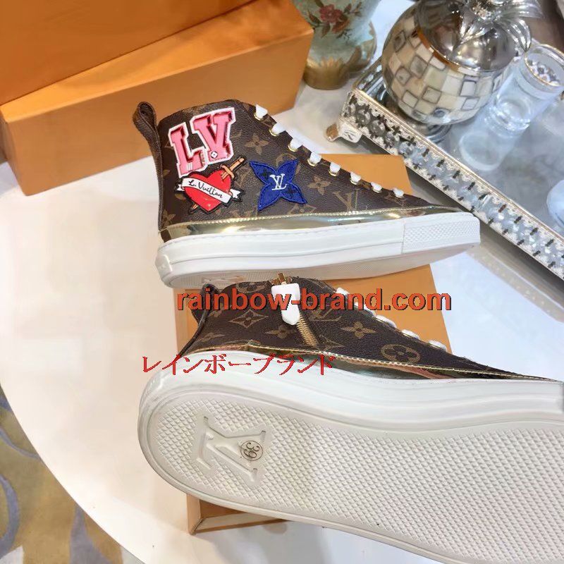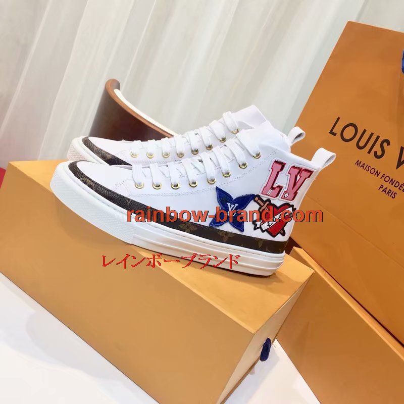 全商品を表示する:ルイヴィトン 26-LV891 2018年最新作 ハイカット スニーカー レディース カジュアルシューズ 通学 通勤 レースアップ スポーツシューズ レザー