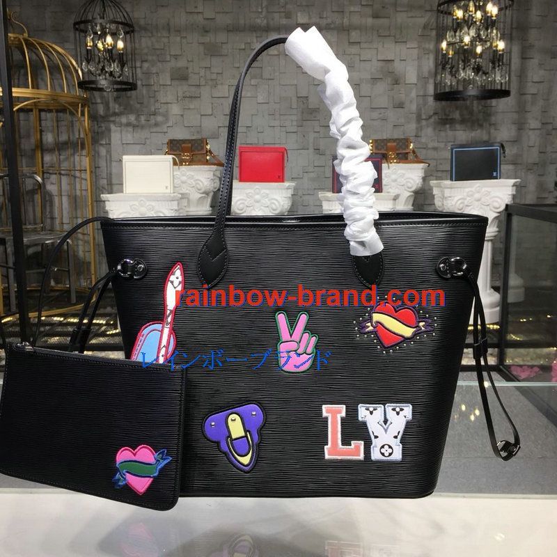 ルイヴィトン LOUISVUITTON 057-M54185hk 2018年最新作 ネヴァーフル MM トートバッグ ハンドバッグ エピレザー レディース ポーチ付き 黒