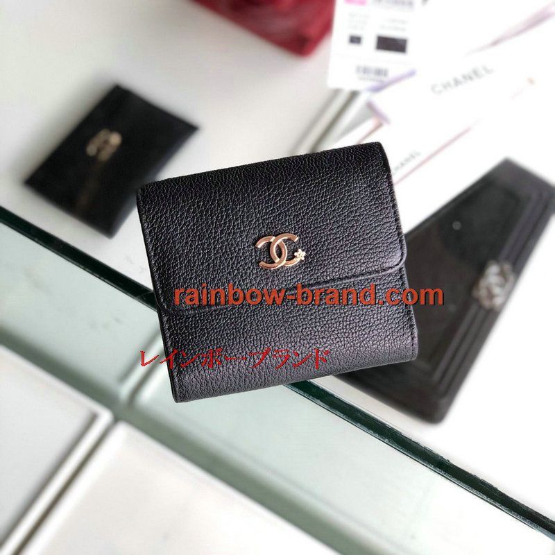 シャネル CHANEL JS-CH81654 2019年最新入荷 スモール ウォレット 三つ折り短財布 小銭入れ レザー