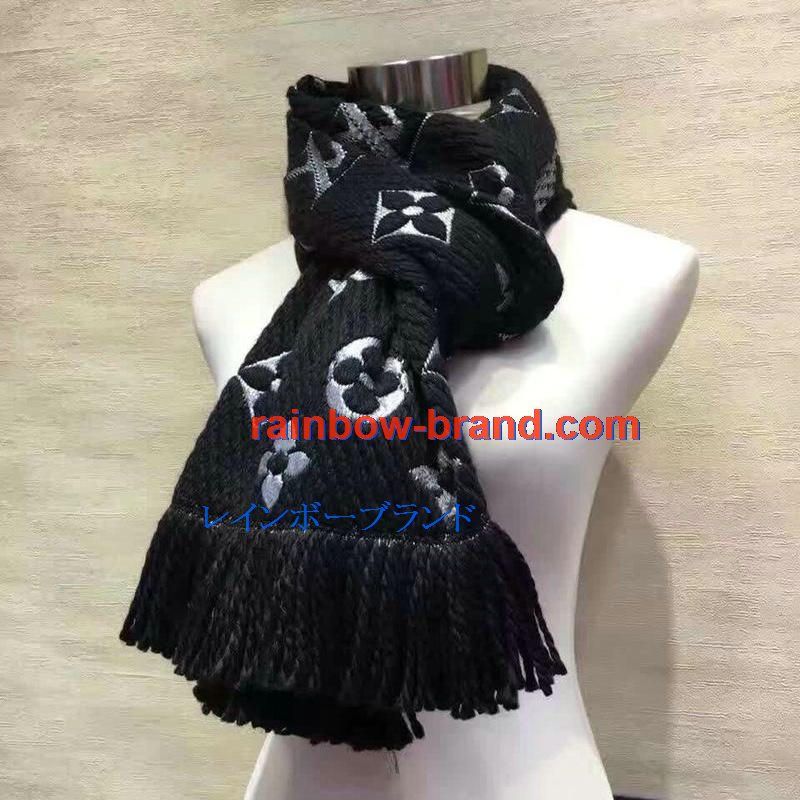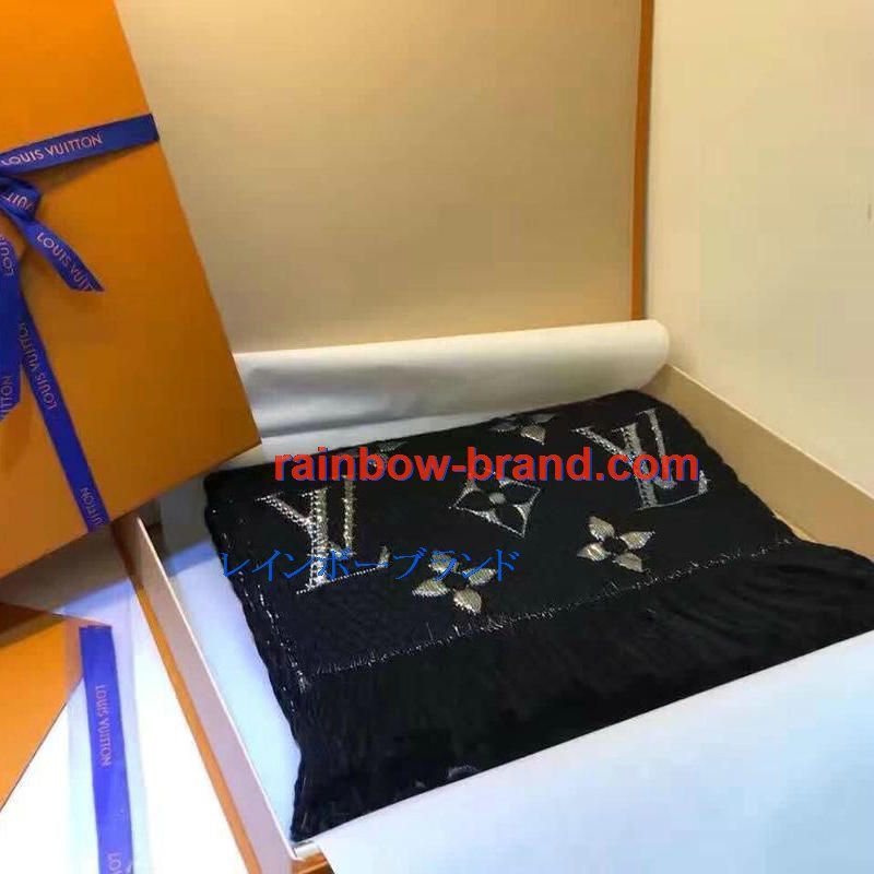 全商品を表示する:ルイヴィトン LOUISVUITTON 99-LVM19002 2019秋冬年最新作 マフラー モノグラム ストール カシミヤ 黒