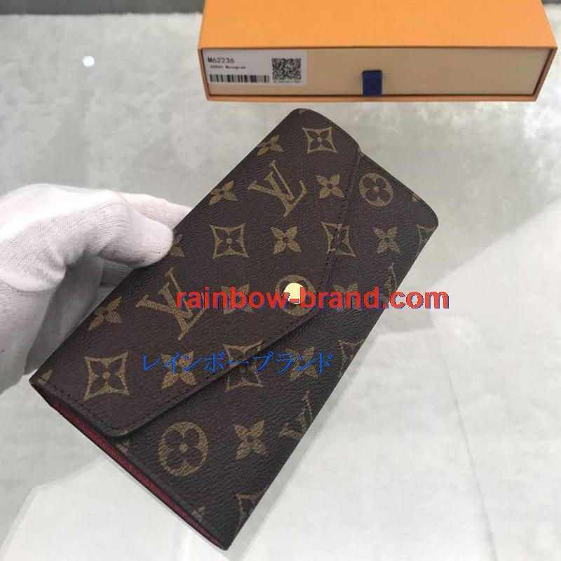 商品名称:ルイヴィトン LOUISVUITTON 99-M62236 2019年最新入荷 ポルトフォイユ サラ 二つ折り長財布 モノグラムキャンパス コクリコ レディース