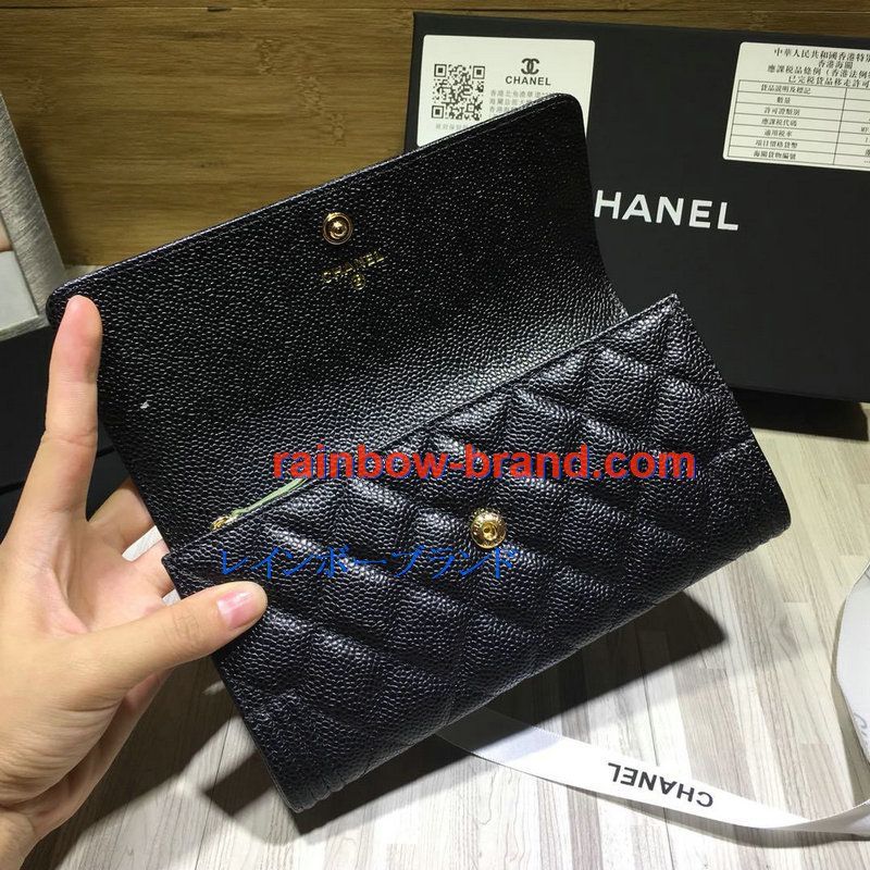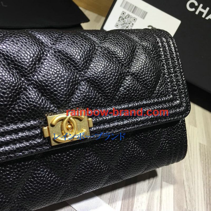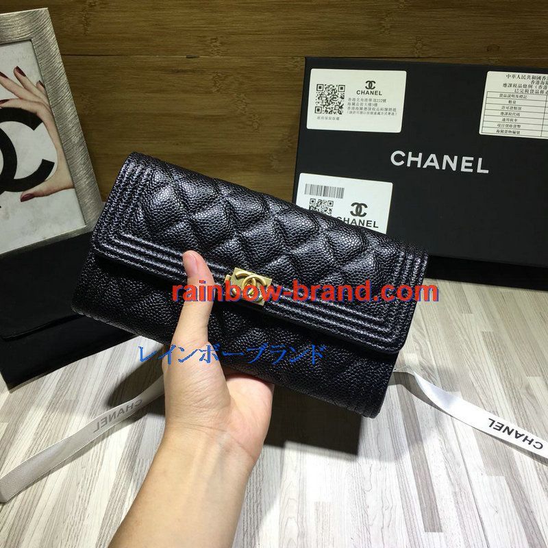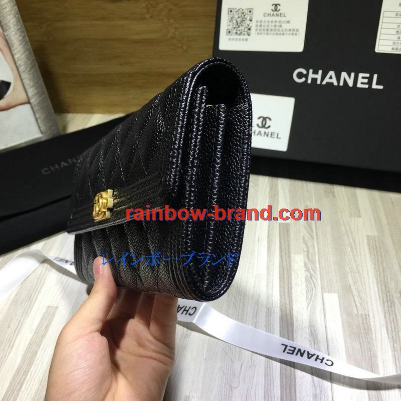 シャネル CHANEL CC-CH50096QP 2019年最新入荷 二つ折り長財布 ロングウォレット フラップウォレット グレインド カーフスキン 黒