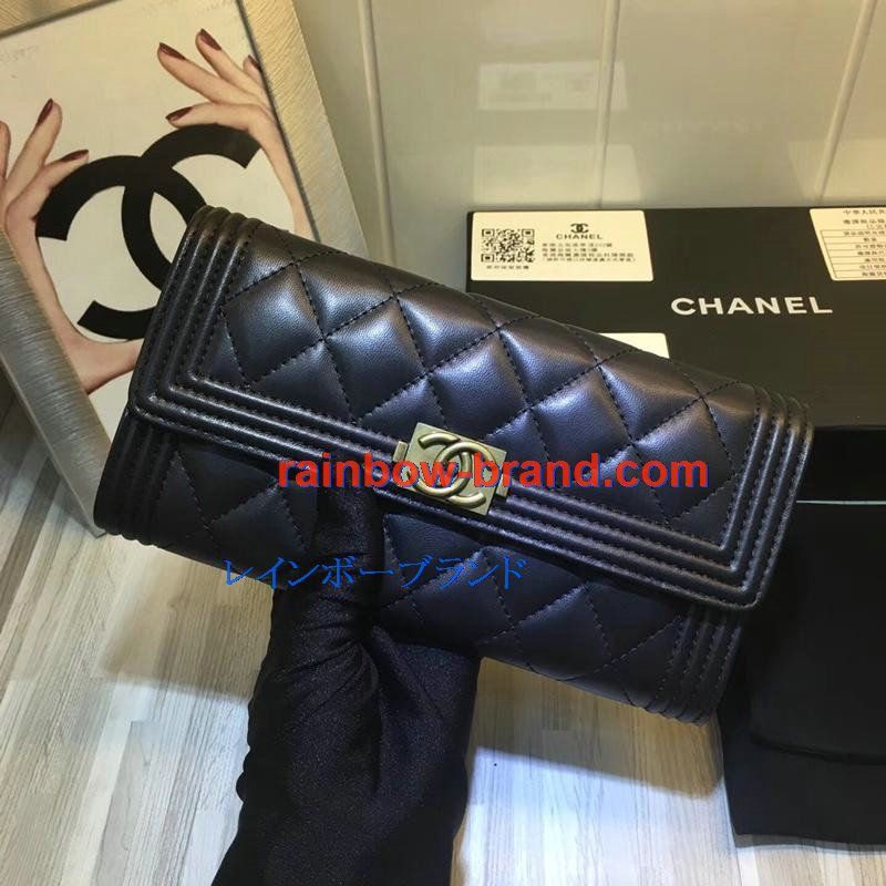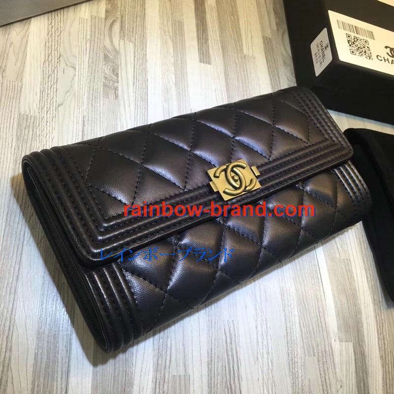 シャネル CHANEL CC-CH50096YJ 2019年最新入荷 二つ折り長財布 ロングウォレット フラップウォレット ラムスキン 黒