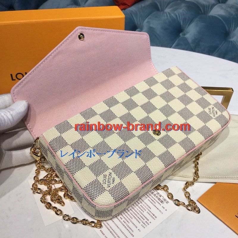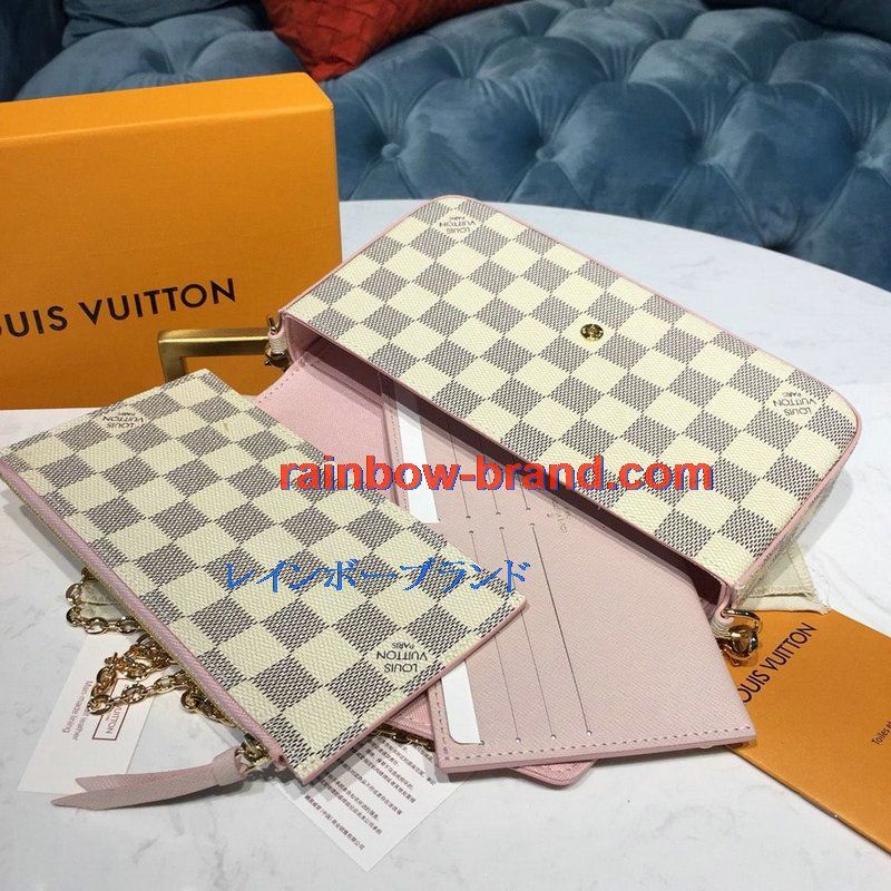 全商品を表示する:ルイヴィトン LOUISVUITTON 057-N60235 2019年最新入荷 ポシェット フェリシー GM チェーンウォレット ショルダーバッグ ダミエアズール ピンク