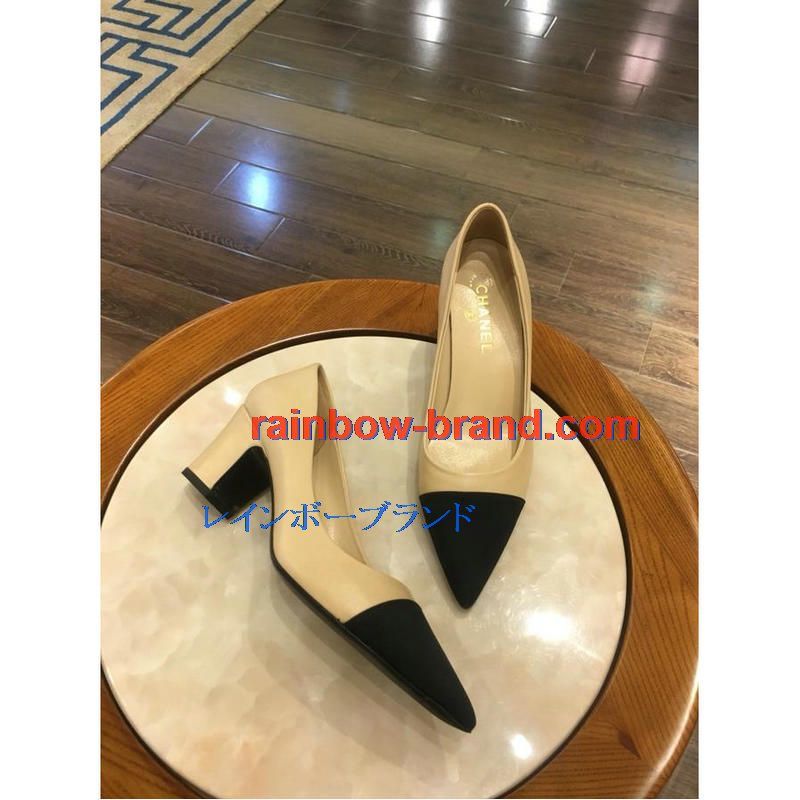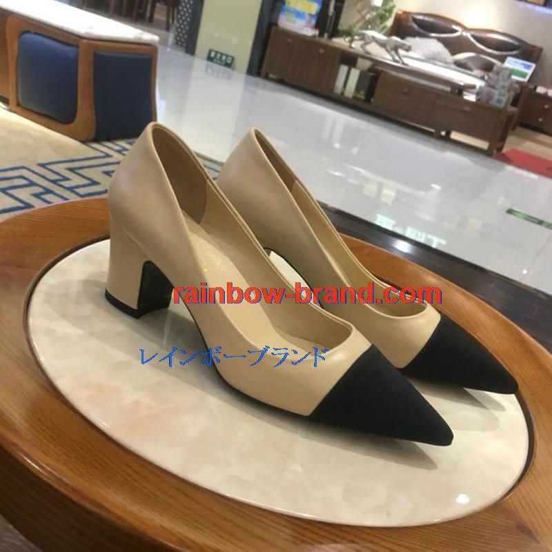シャネル CHANEL 26-CHJ19013 2019年夏最新入荷 ローヒールシューズ パンプス チャンキー とんがりトウ 靴 レディース
