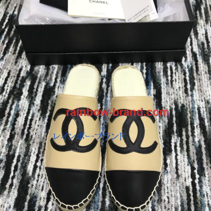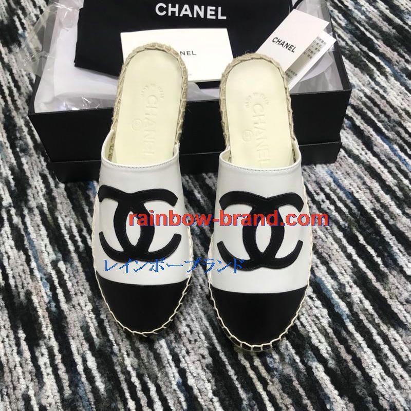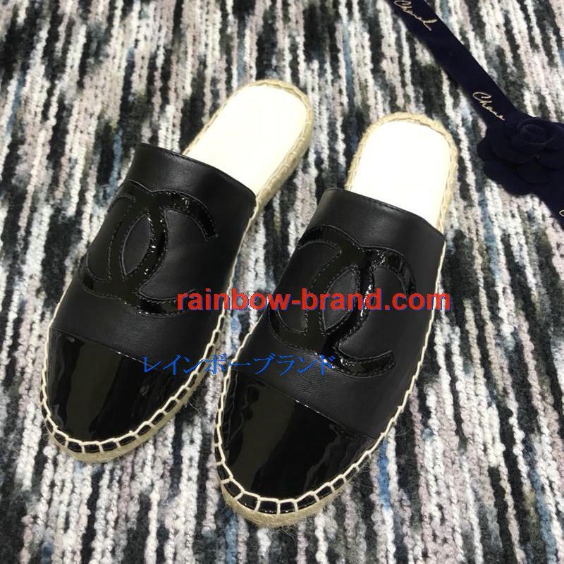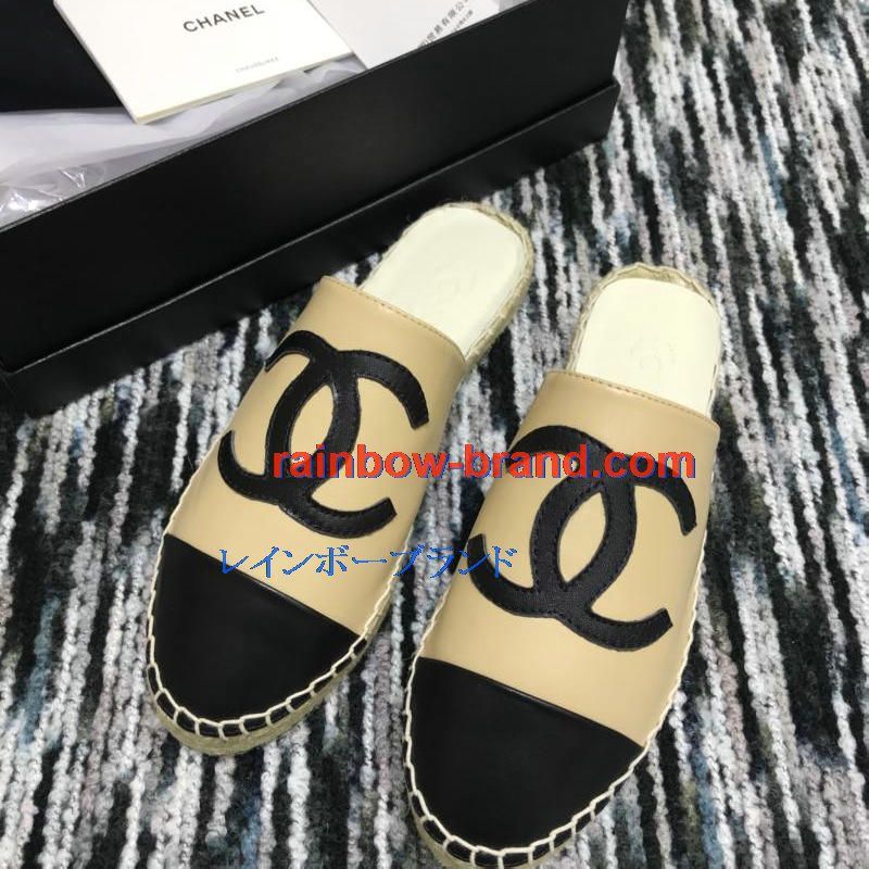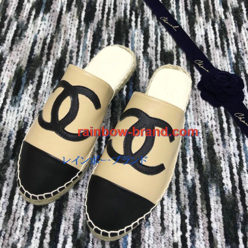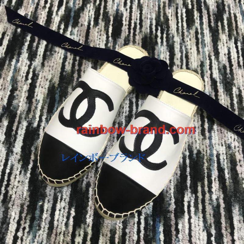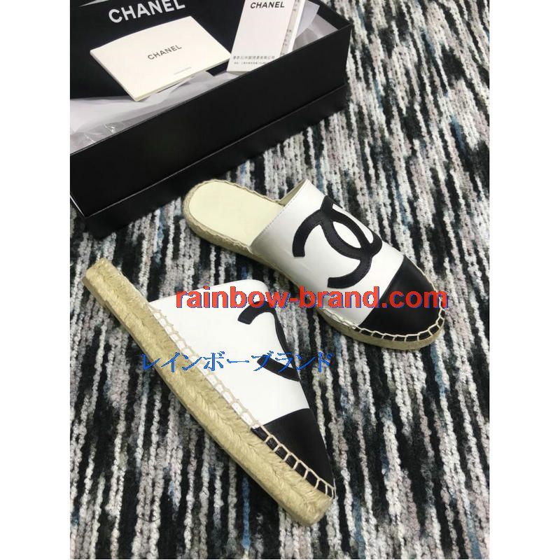 シャネル CHANEL 26-CHJ19035 2019年春夏最新入荷 エスパドリーユ サンダル ココマーク スリッパー ミュール レディース