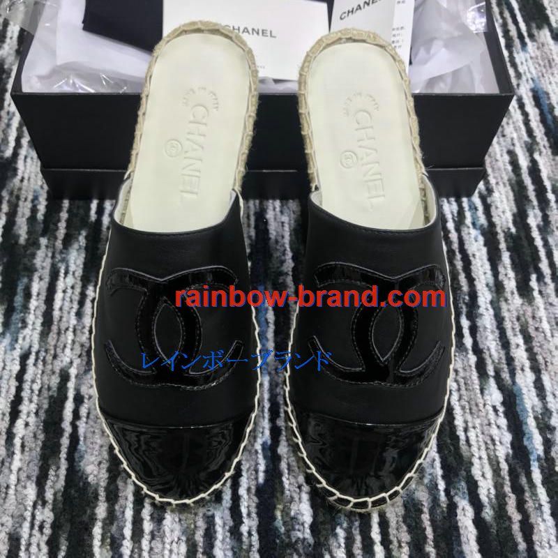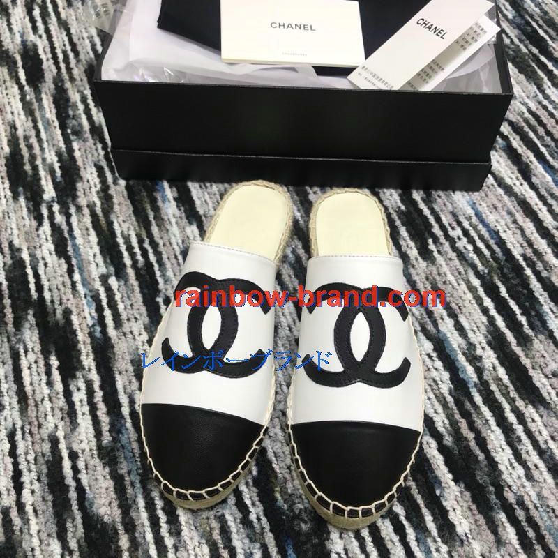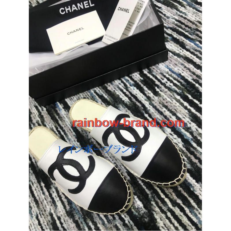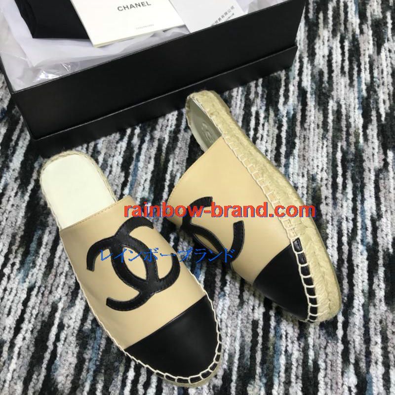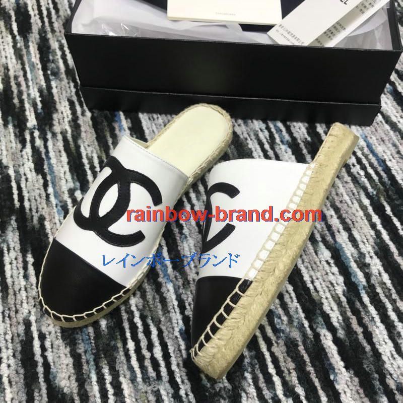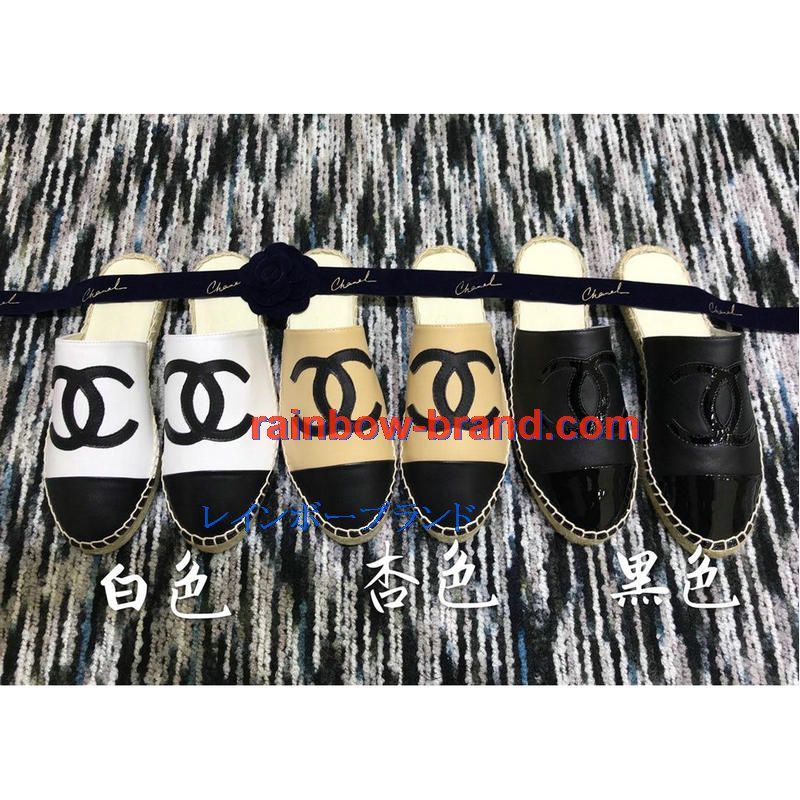 シャネル CHANEL 26-CHJ19035 2019年春夏最新入荷 エスパドリーユ サンダル ココマーク スリッパー ミュール レディース