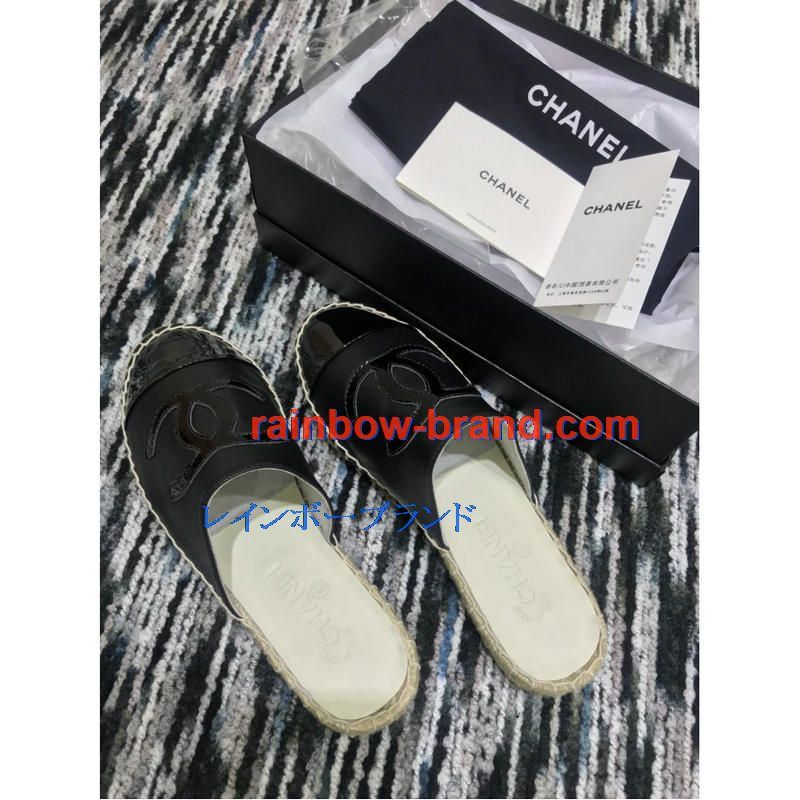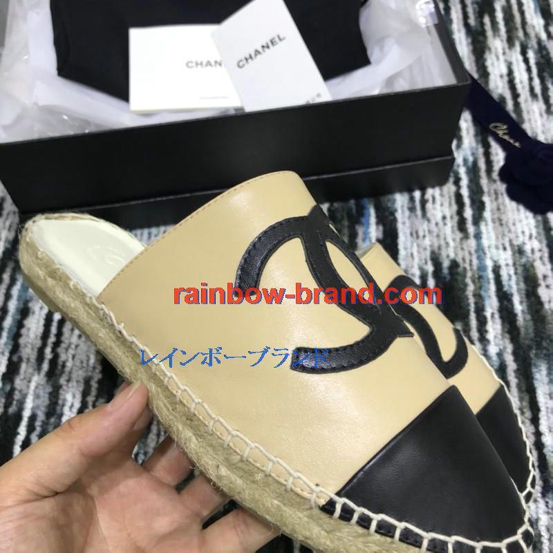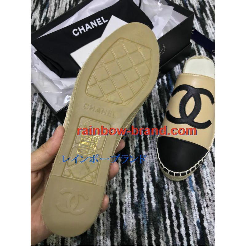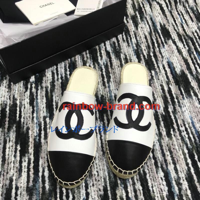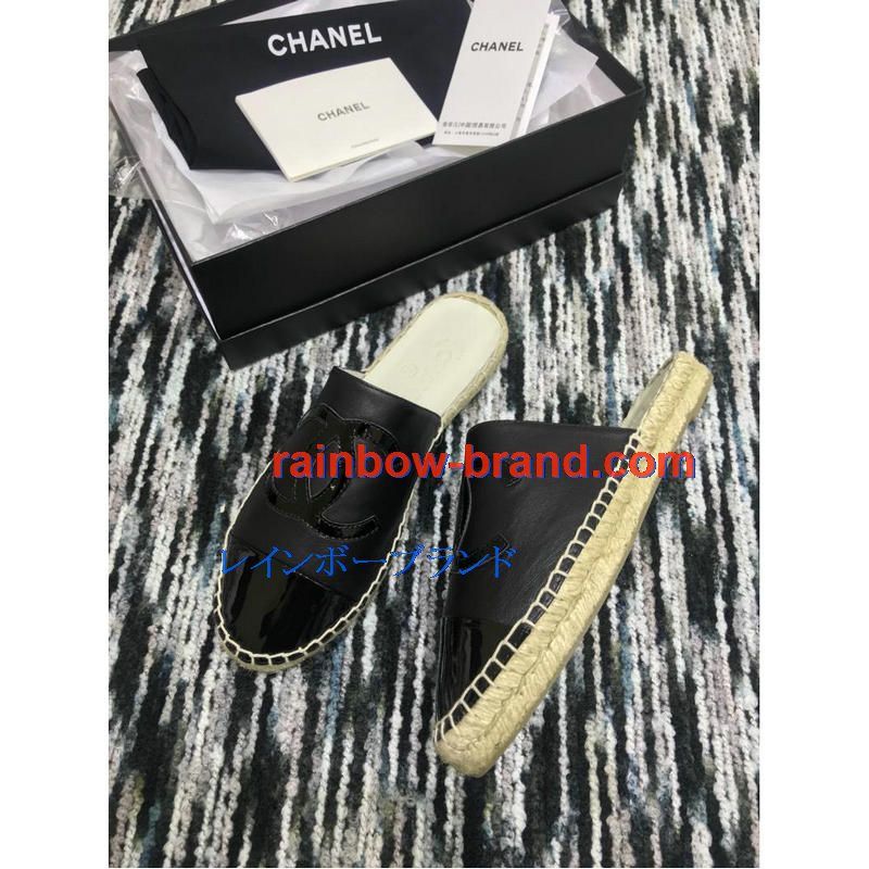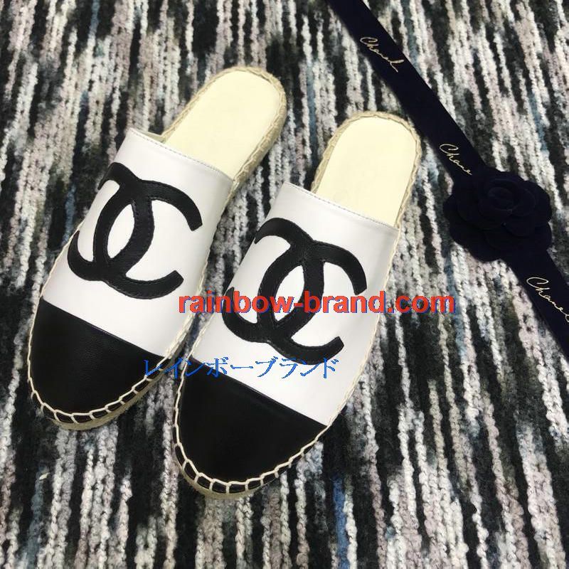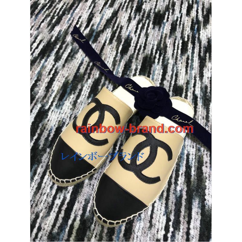シャネル CHANEL 26-CHJ19035 2019年春夏最新入荷 エスパドリーユ サンダル ココマーク スリッパー ミュール レディース