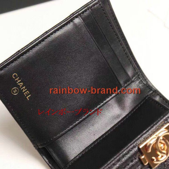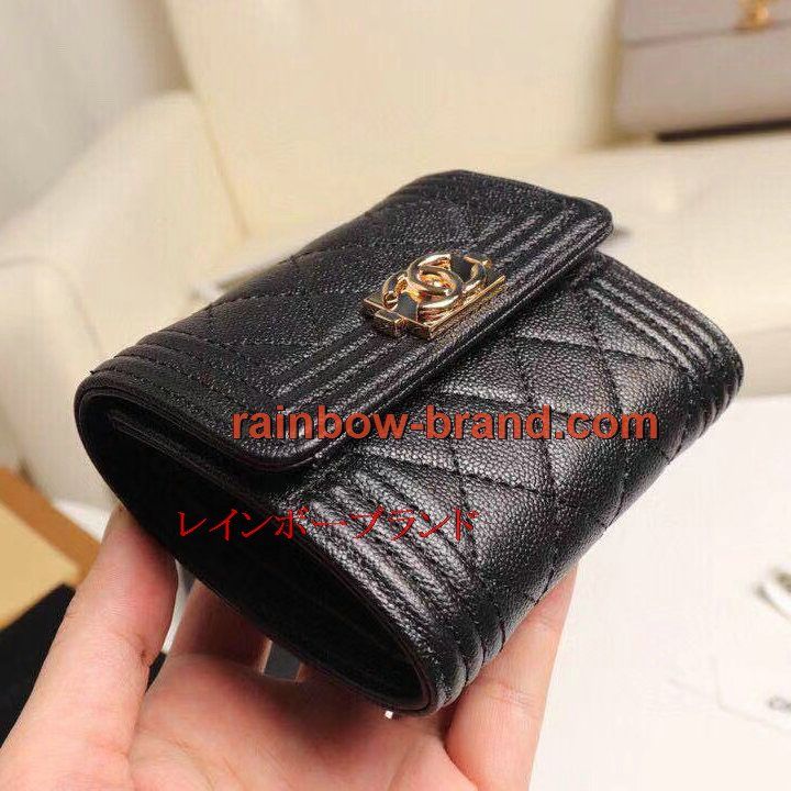 シャネル CHANEL 2019年最新入荷 BOY CHANEL スモール フラップ ウォレット 三つ折り短財布 小銭入れ コインケース キャビアスキン