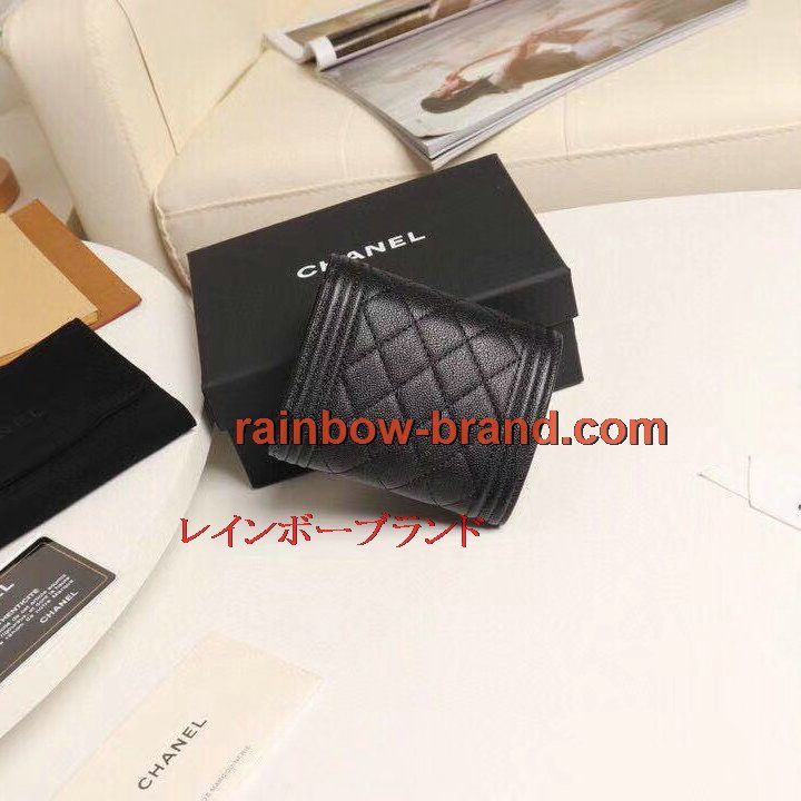商品名称:シャネル CHANEL 2019年最新入荷 BOY CHANEL スモール フラップ ウォレット 三つ折り短財布 小銭入れ コインケース キャビアスキン