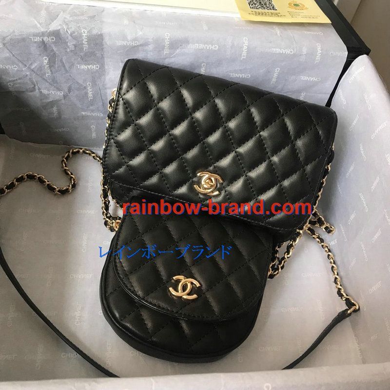 シャネル CHANEL CC-CH0545 2019年最新入荷 サイドパック ショルダーバッグ ダブルバッグ ラムスキン ミニサイズ