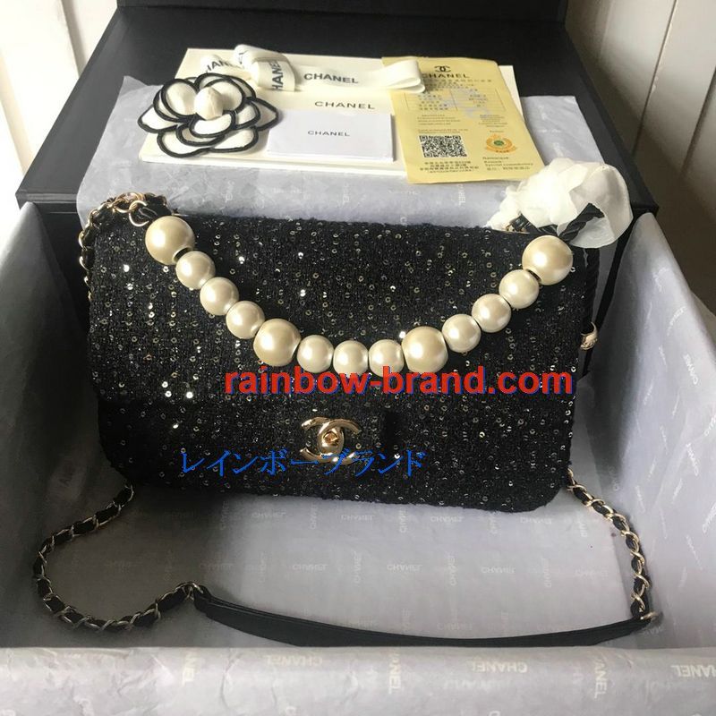 シャネル CHANEL 063-CH0594 2019年最新作 フラップバッグ 斜め掛け ショルダーバッグ レディースかばん ツイード コスチューム パール