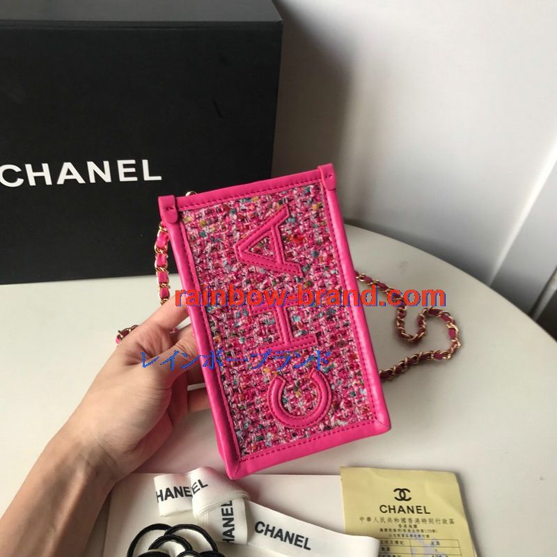 シャネル CHANEL JS-CH72903M 2019年最新入荷 iphone ケース チェーン付き 携帯ケース スマートフォンバッグ ツイード