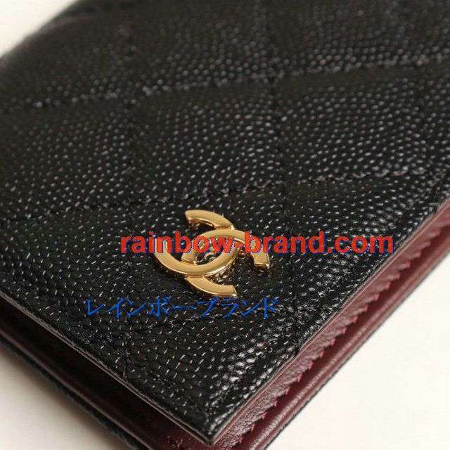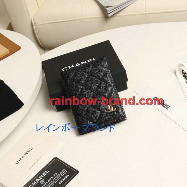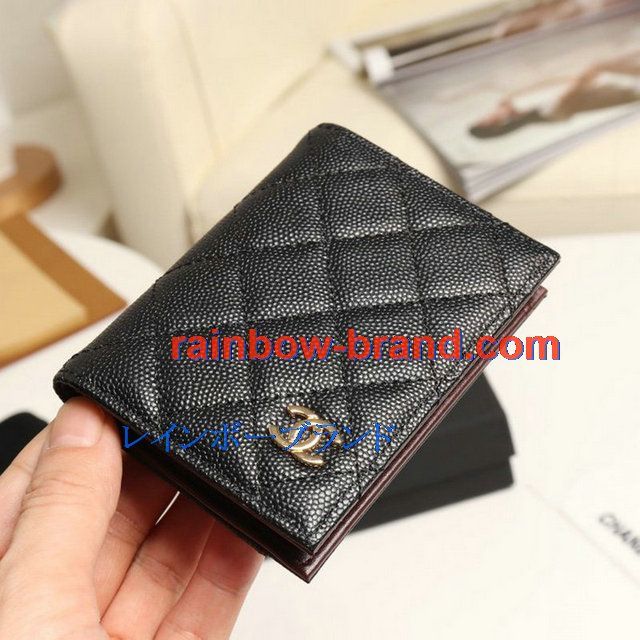 シャネル CHANEL JS-CH0215QJK 2019年最新入荷 クラシック カードケース 二つ折り キャビアスキン 名刺入れ グレインド カーフスキン