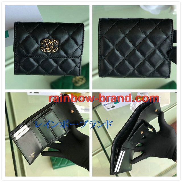 シャネル JS-CH0794Z CHANEL 2019年最新入荷 三つ折り短財布 ショートウォレット 小銭入れ ラムスキン