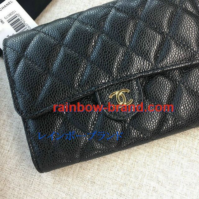シャネル CHANEL JS-CH84341JK 2019年最新入荷 三つ折り中財布 フラップ短財布 ウォレット コインケース 小銭入れ キャビアスキン