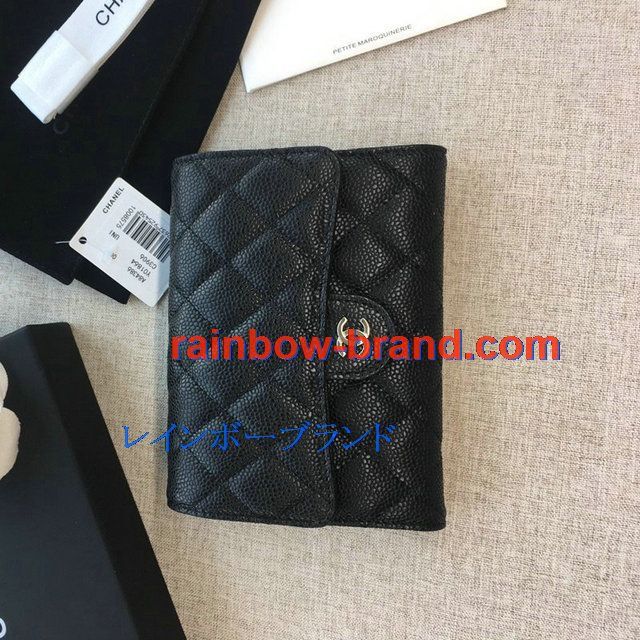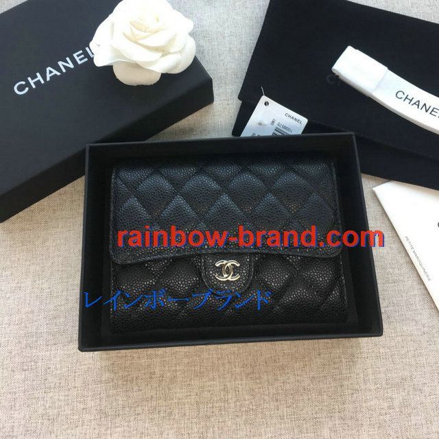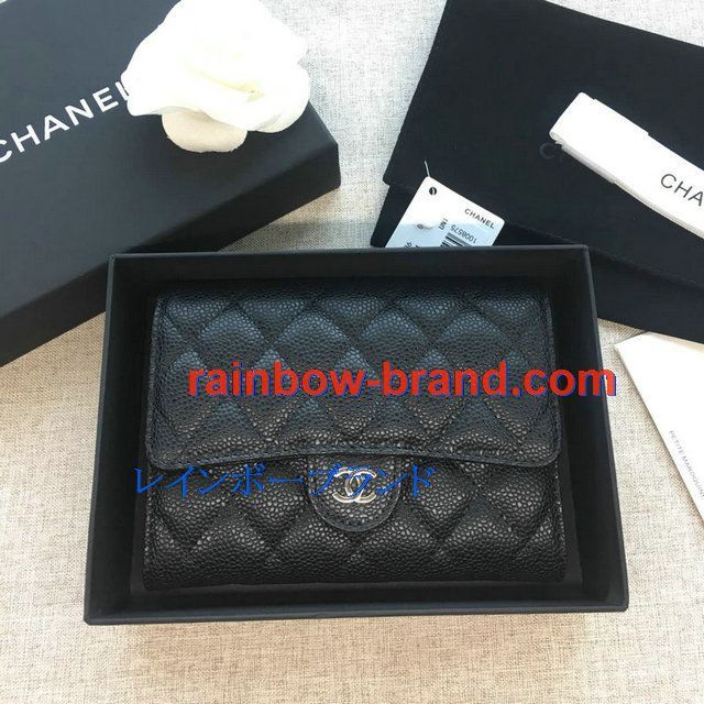 シャネル CHANEL JS-CH84341YK 2019年最新入荷 三つ折り中財布 フラップ短財布 ウォレット コインケース 小銭入れ キャビアスキン