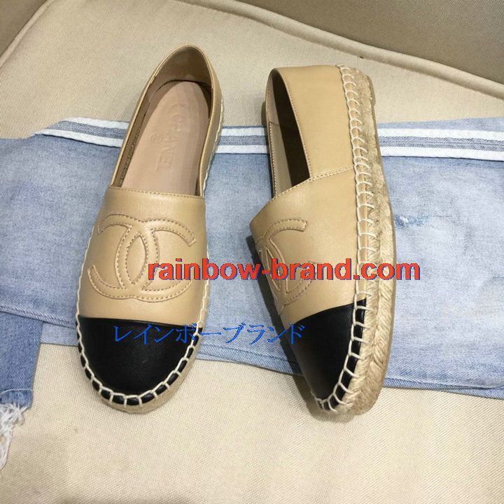 シャネル CHANEL 26-CHJ200055P 2020年夏最新入荷エスパドリーユシューズ レディース フラットシューズ カジュアルシューズ レザー
