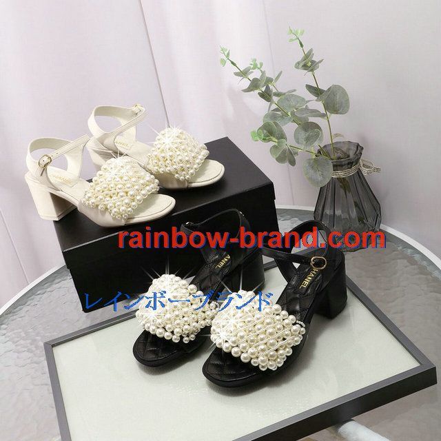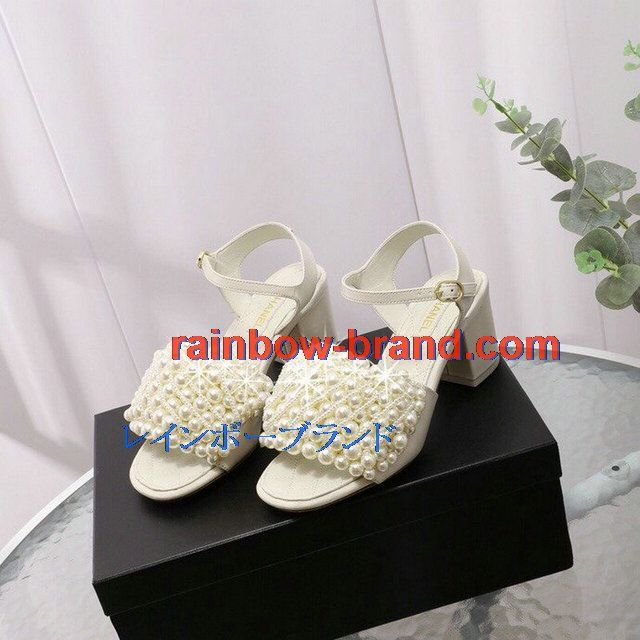 全商品を表示する:シャネル CHANEL 26-CHJ20093G 2020年夏最新入荷 パールサンダル ローヒール サマーサンダル レディースシューズ フラットシューズ レザー