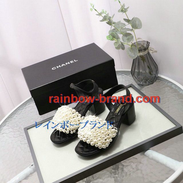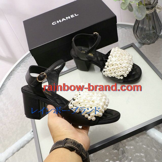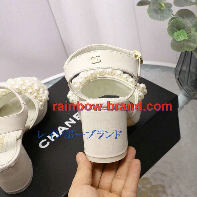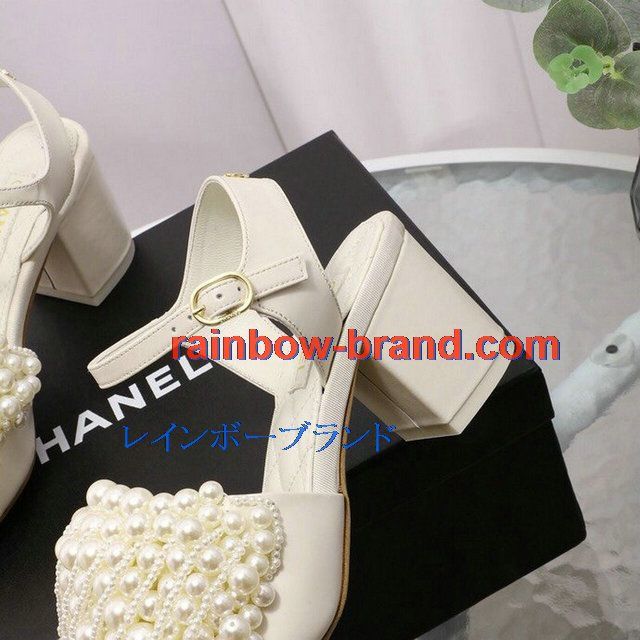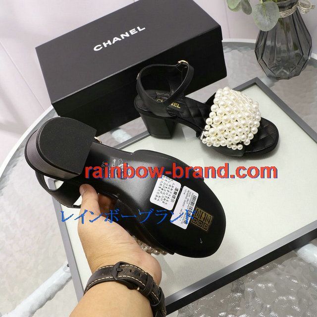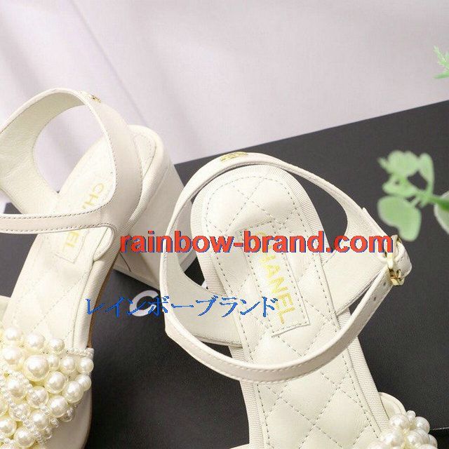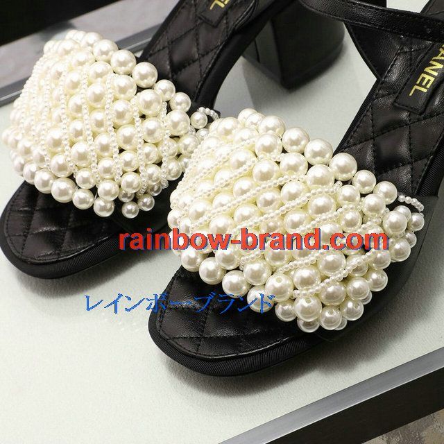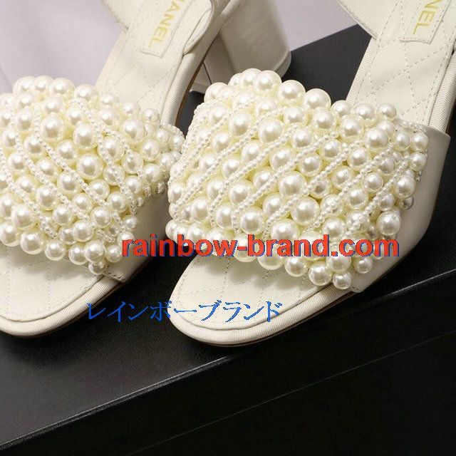 シャネル CHANEL 26-CHJ20093G 2020年夏最新入荷 パールサンダル ローヒール サマーサンダル レディースシューズ フラットシューズ レザー