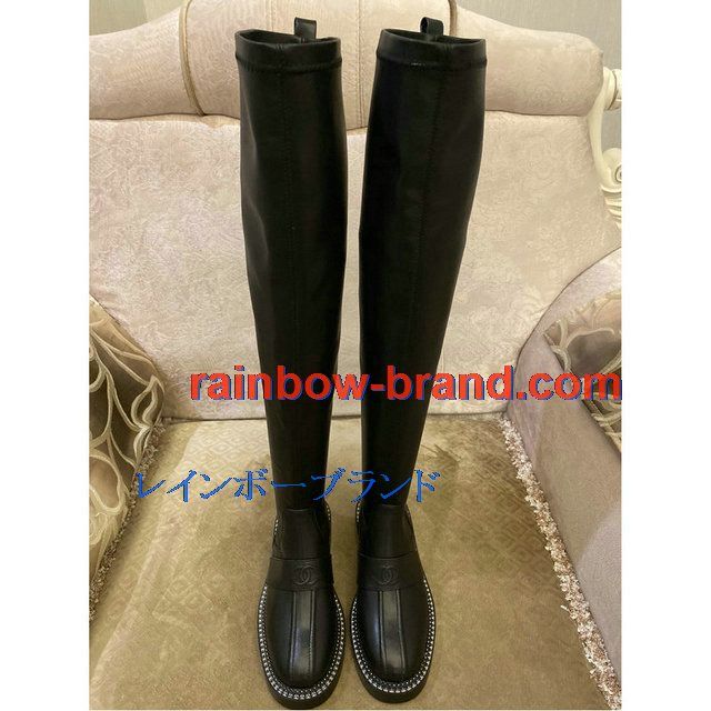 商品名称:シャネル CHANEL 26-CHJ20119T 2020年秋冬最新入荷 ロングブーツ ローヒールシューズ レディースシューズ カーフレザー