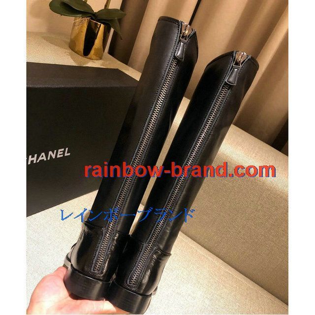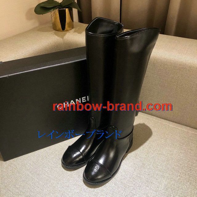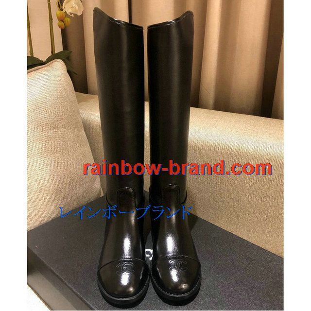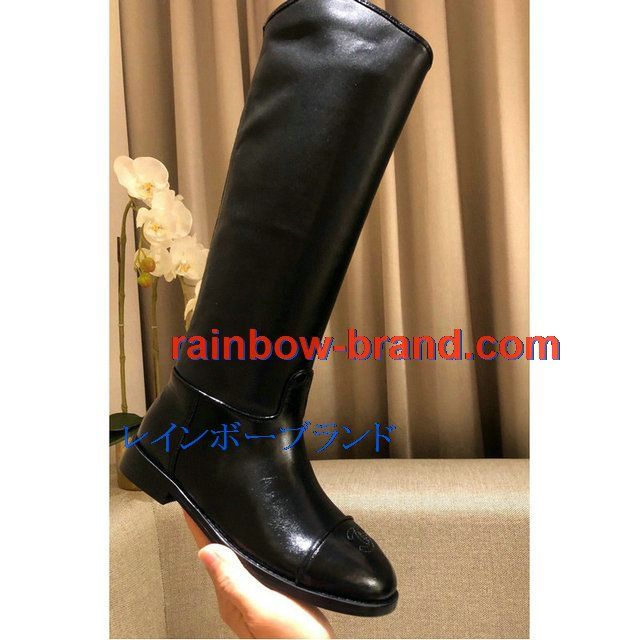 シャネル CHANEL 26-CHJ20124 2020年秋冬最新入荷 ロングブーツ ローヒールシューズ レディースシューズ カーフレザー 靴