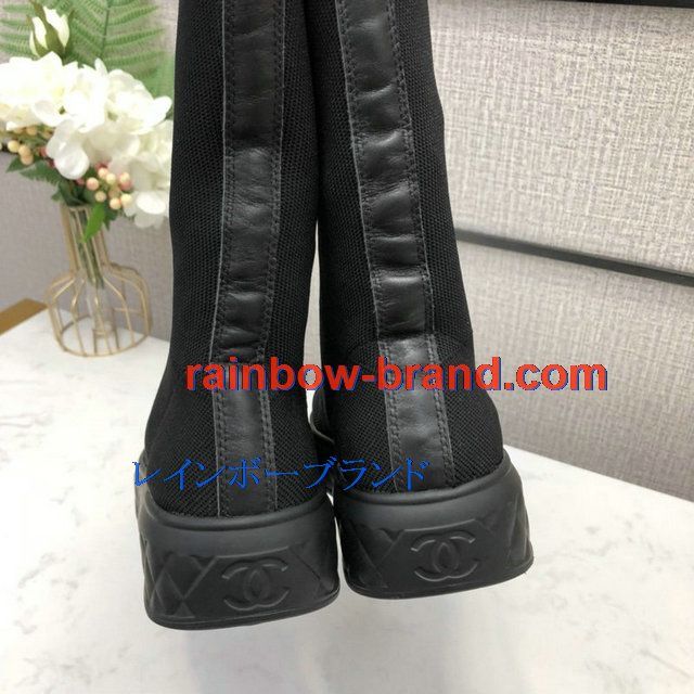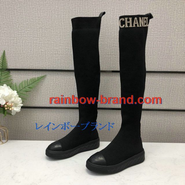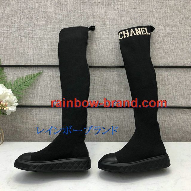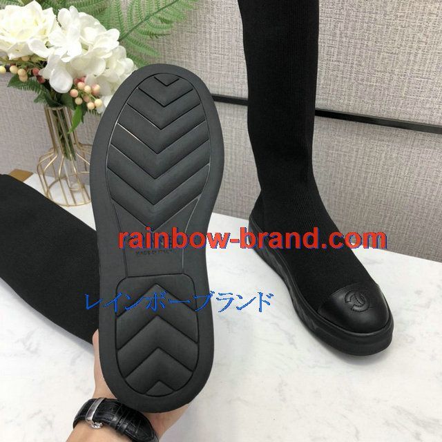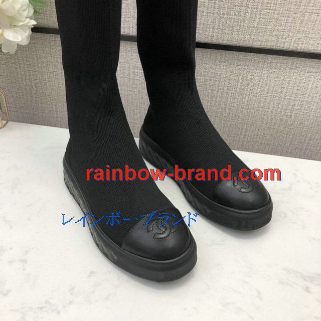 商品名称:シャネル CHANEL 26-CHJ20126C 2020年秋冬最新入荷 ロングブーツ フラット ソックスブーツ レディースシューズ カーフレザー 靴